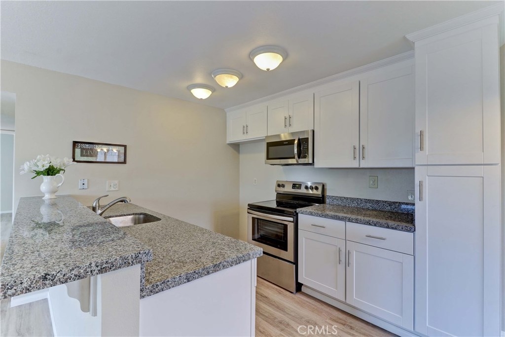 Newly remodeled! Gorgeous two bedroom condo in the Bench Mark Villas Community in the heart of Lake Forest. This upstairs end unit offers a bright, spacious floor plan with lots of natural light. Living room opens to balcony with view of trees. Newly remodeled beautiful kitchen with granite counters, new cabinets and stainless steel appliances. New designer paint color and flooring. Beautiful custom tile bath. The balcony has just been updated with new decking. Indoor laundry with washer and dryer included. Additional storage closet on the balcony. Resident parking and plenty of guest parking. Water and Trash paid by home owner's association. Minutes to the Orange County Great Park with sports, arts, farmers market and so much more recreation and entertainment! Close to shopping and dining. Walk to nearby Rimgate Park for playground, picnics, tennis, basketball and hiking trails.