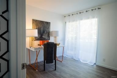 STUNNING, dramatic total remodel with finest quality upgrades. EXCEPTIONAL.. highly upgraded upstairs end unit with greenbelt views. This 2 bedroom 1 bathroom boasts an indoor laundry with new washer/dryer, large private patio, DREAM chef's all new European kitchen shaker cabinets with pull out shelves, with top of line Calacatta marble counters & waterfall end, stainless energy efficient NEW appliances including fridge/freezer with water/ice, microwave, stove, dishwasher, new stainless sink, new plumbing fixtures, recessed lighting.. Remodeled bathroom with double vanity sinks, tub/shower, custom mirror & light fixture.. Plastered ceilings, new modern light fixtures, new baseboards, new A/C.. Private patio/balcony with storage closet.. Dream large master with mirrored closets galore. New luxury vinyl wood plank flooring throughout, new paint, drapes and so much more. This is a total steal with prime location, light & very bright. TURNKEY..TURNKEY condition and priced to sell. Note HOA includes water, gas & trash. Plenty of resident & guest parking. Close to great shopping, restaurants, freeways & entertainment.
