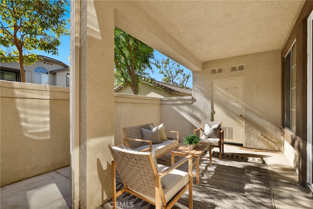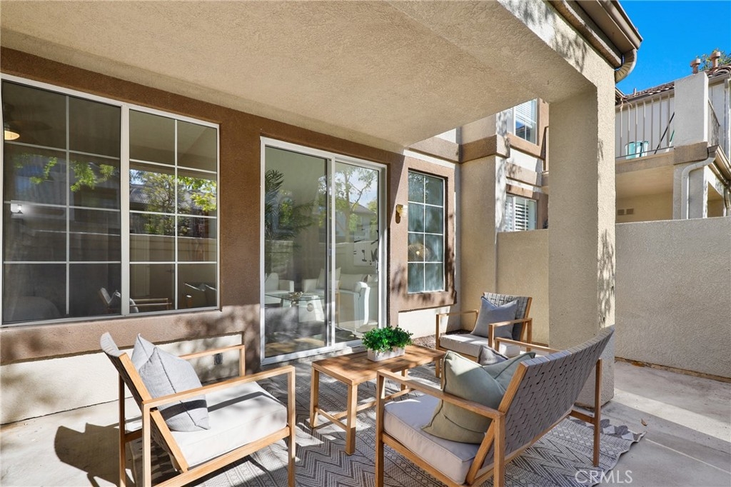 Experience the perfect blend of comfort and sophistication in this beautifully appointed single-level Foothill Ranch condominium. Nestled in a sought-after community, this elegant ground-floor residence offers a spacious and airy layout designed for effortless living. Step into the expansive primary suite, complete with a full en-suite bath that has a shining new vanity, providing a serene retreat at the end of the day. A well-appointed guest bedroom is conveniently located near the second full bathroom, boasting a new vanity as well, offering privacy and comfort for family or visitors. The inviting living area is warmed by a charming gas fireplace that seamlessly flows into the kitchen, which features a stylish pass-through opening and brand-new glistening cabinets and countertops that are perfect for entertaining and more. Just beyond, a spacious private patio offers an ideal setting for morning coffee or evening relaxation. The laundry room, conveniently located off the patio, provides additional storage and houses the water heater. This home includes a one-car garage conveniently positioned at the front of the unit for easy access. The resort-style community amenities feature a sparkling pool and rejuvenating jacuzzi, perfect for hosting gatherings or unwinding in a peaceful setting. Enjoy breathtaking views of Saddleback Mountain and the picturesque surrounding foothills, creating a stunning backdrop to your everyday life. Don’t miss the opportunity to make this exceptional residence your own!