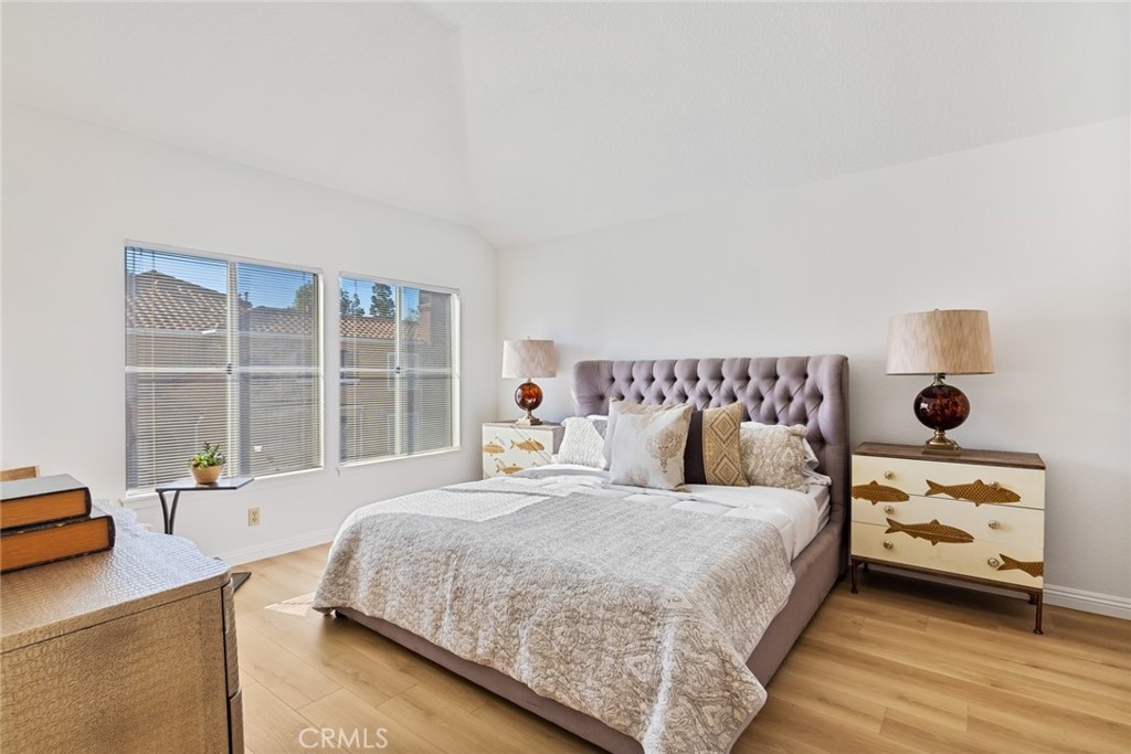 Welcome to this beautifully maintained, 2-story 2 bedroom 2 bath corner unit in the heart of booming Lake Forest!! 10 mins drive from UCI and Irvine Spectrum. This lovely home was built in 1990, located in the gated Lake Forest Shores community. It has no neighbors above. The first floor features a spacious one-car garage and a storage room. Entering the front door, you will find plenty of space for organizing shoes. On the right-hand side, you will find the stairway leading you to the second floor, this dreamy living area welcomes you with its modern laminate floors, recently upgraded kitchen, newly painted wall, cozy fireplace, and plentiful natural light. The big formal dining area is perfect for family and friends gatherings. Walk out through the sliding door to the covered patio, just sit down, relax and enjoy the sunset. Both bedrooms are bright, upright, and square, not a tiny space wasted in this perfect home. By living within the community, you can enjoy the beautiful lake view, and even fishing! It also grants you membership to the Lake Forest Beach & Tennis Club. The Club offers a Jr. Olympic swimming pool, a smaller north pool, a children's wader, beach and swim lagoon, five tennis courts, one Pickle ball court, two half court basketball courts, a sand volleyball court, fitness center, Lakeview Learning Center preschool, Lake View Lounge, two pool tables and shuffleboard, also the fitness center, it includes four - StarTrac Pro Treadmills, 2 elliptical machines, a StarTrac Pro Recumbent bike, a Hoist multi-unit system with new bench, a Smith machine and new dumbbells and plate tree. Another great thing about this home is that you can walk to nearby shops, pharmacies, restaurants, and grocery stores. This home is perfect for retirement or a growing family. It won't last, contact me today!!!