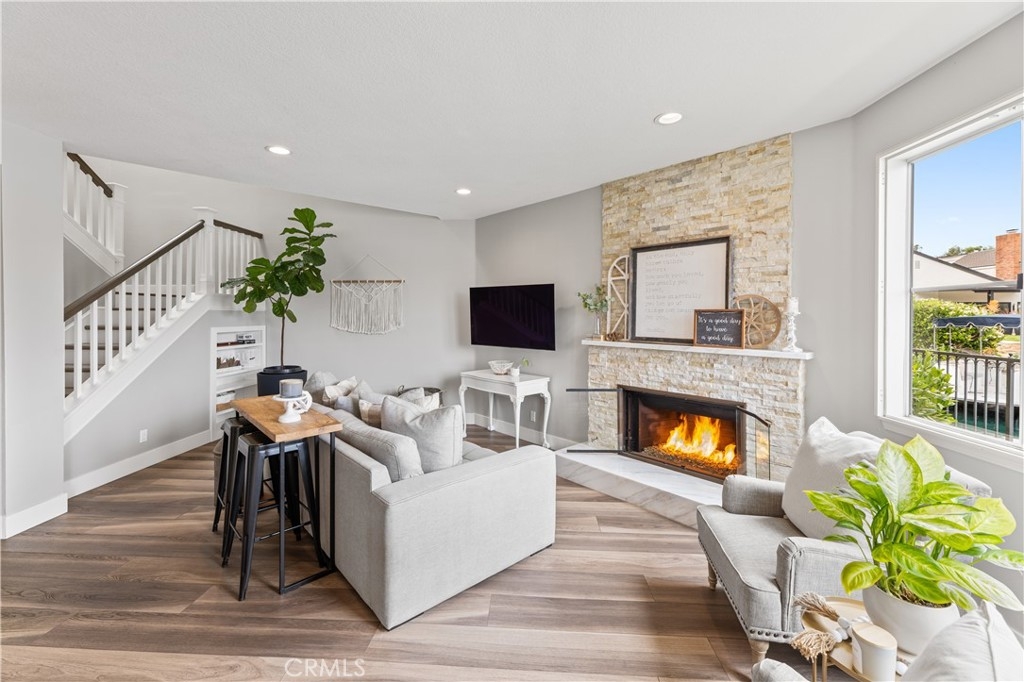 Discover the pinnacle of lakeside luxury in this beautifully upgraded 3-bedroom, 3-bathroom townhome in the gated community of Lake Forest Shores. Set against the serene backdrop of Lake Forest's private lake, this 1,928 sq ft home offers spectacular water views from nearly every angle—bringing a sense of calm and natural beauty to your everyday life. Step inside to a bright, open-concept layout enhanced by wide-plank luxury vinyl flooring, plantation shutters, and expansive windows that perfectly frame the shimmering lake. The spacious living room features a cozy fireplace and a large sliding glass door that opens to your private patio—ideal for morning coffee or sunset dining. The fully remodeled kitchen is equipped with stainless steel appliances, a wine fridge, modern cabinetry, and an oversized sink. Whether you're cooking, dining, or relaxing, the tranquil water views create a seamless indoor-outdoor living experience. Upstairs, the master suite is a true retreat with breathtaking lake views, a private balcony, vaulted ceilings, a second fireplace, a walk-in closet, and a spa-inspired en-suite bathroom with dual sinks and a custom dual-head shower. A second en-suite bedroom and a versatile third bedroom round out this flexible and functional floor plan. Enjoy exclusive access to the Lake Forest Beach & Tennis Club, including pools, spa, tennis courts, pickleball, a gym, and lakeside community events. The condo complex also offers its own private pool for residents. Whether you're seeking a peaceful sanctuary or a lively waterfront lifestyle, 22826 Sailwind Way delivers. Don’t miss your chance to own one of the rare homes with uninterrupted lake frontage and year-round views that feel like a vacation every day.