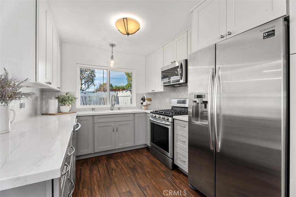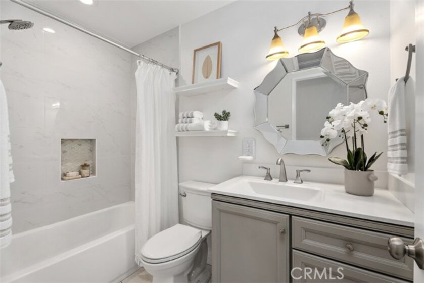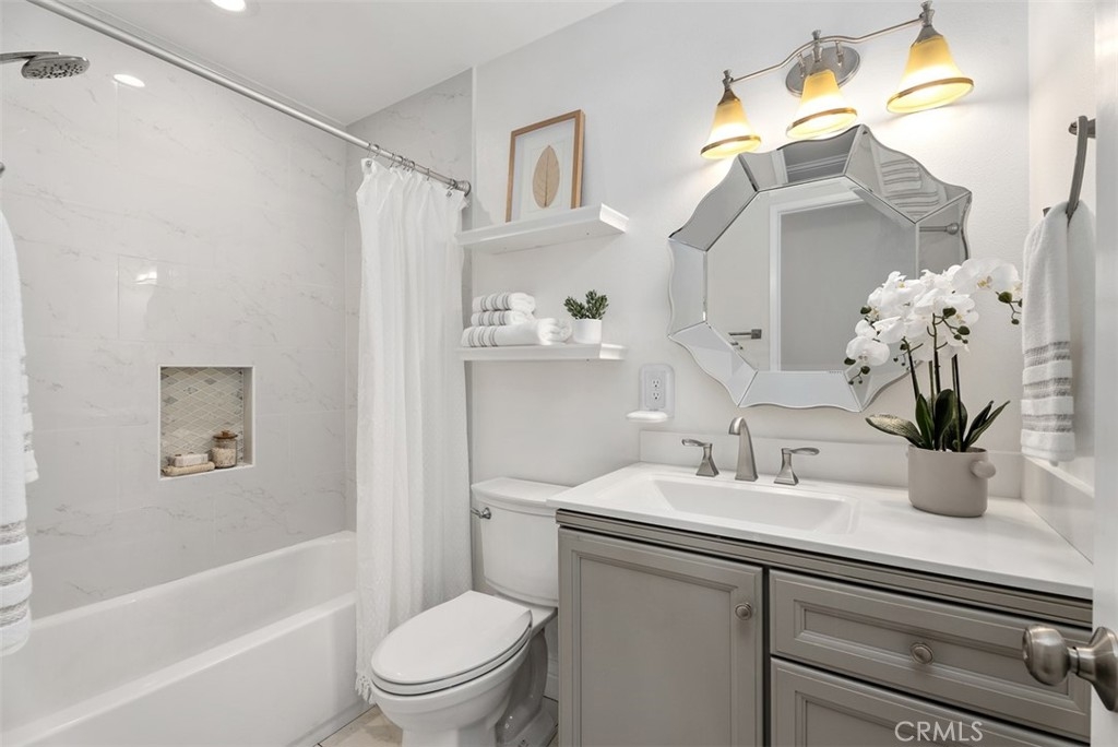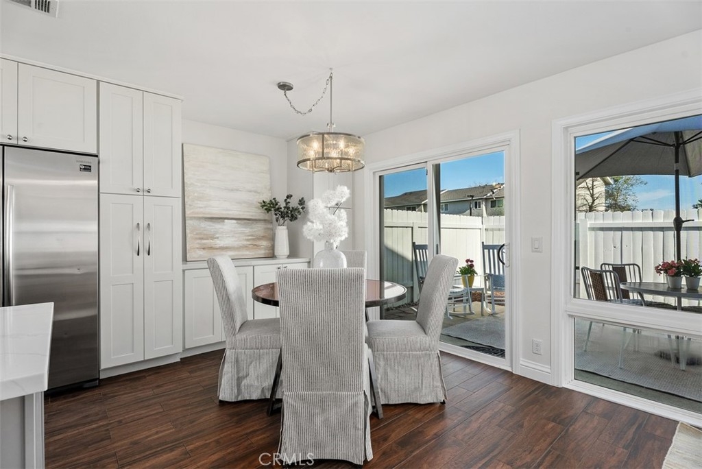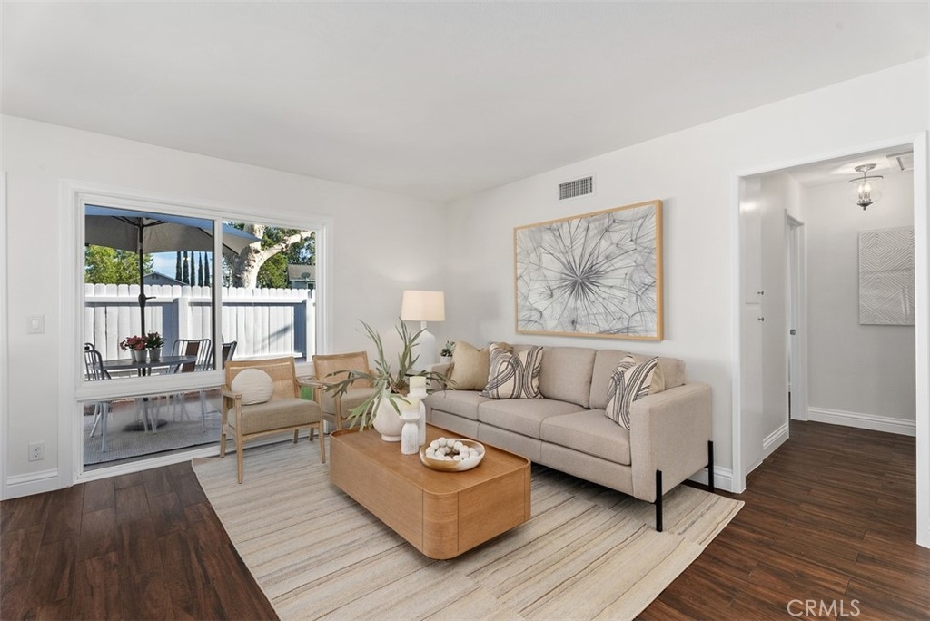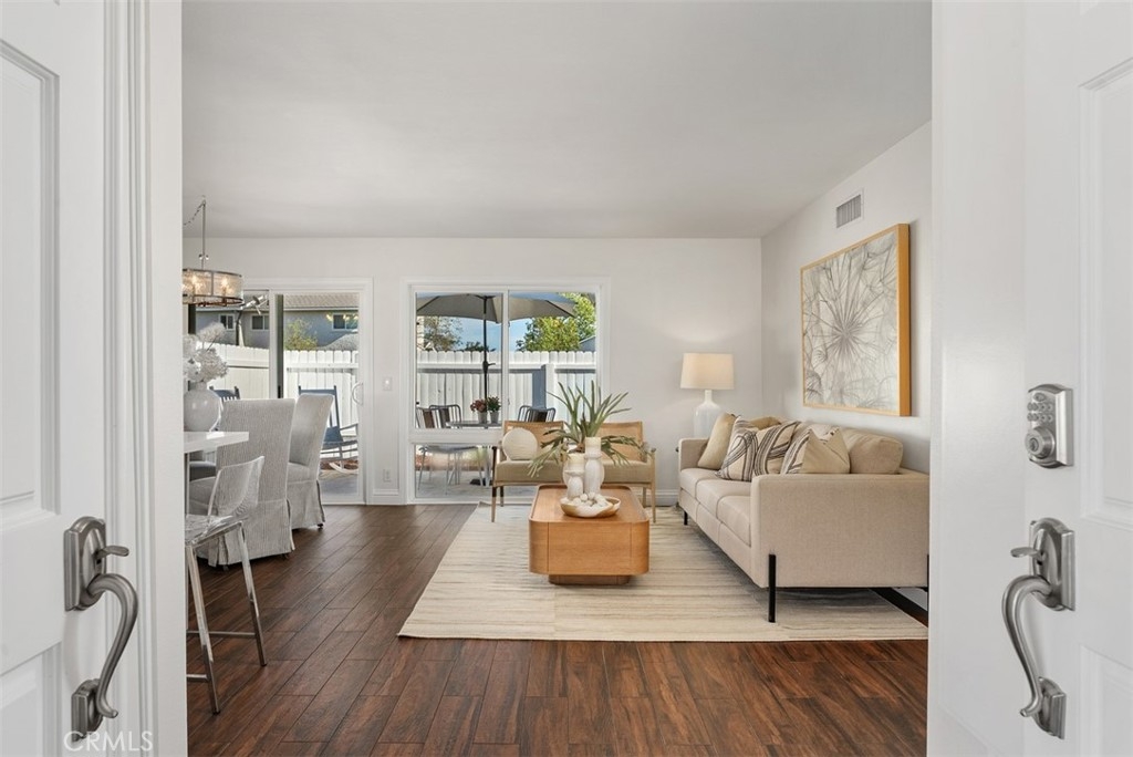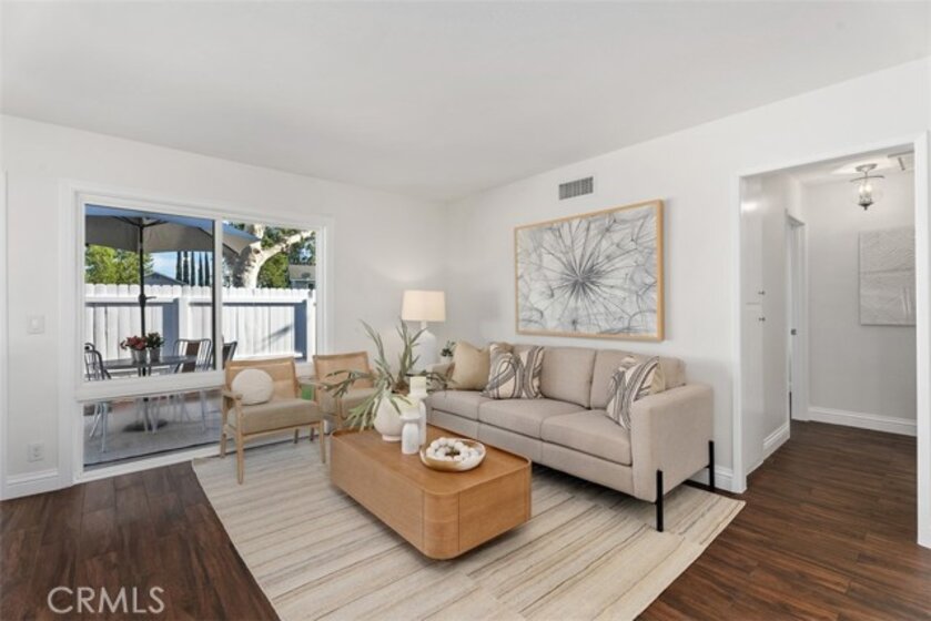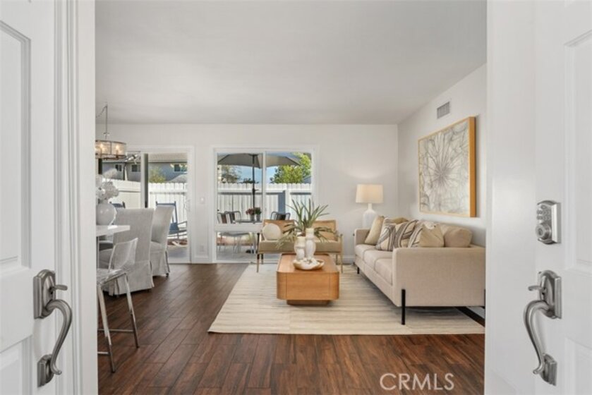 Tucked away in a peaceful corner of the desirable Richwood community, this beautifully updated single-story home offers the perfect blend of comfort, privacy, and modern style. With only one shared wall and no one above or below, the home lives like a cottage retreat. Step through the gated front courtyard, an inviting space perfect for morning coffee, container gardening, or relaxing with friends. Enter into the freshly painted light-filled interior designed for easy living. The completely remodeled and reimagined kitchen and dining area features quartz countertops, stainless steel appliances, soft close cabinetry, and views of the courtyard, providing both elegance and extra storage for everyday functionality. The refrigerator is included, making this home truly move-in ready. Throughout the home, wood-look tile flooring flows seamlessly from room to room, creating a warm, cohesive feel while offering the durability and low maintenance homeowners love. All of the windows have been upgraded to dual-pane windows, improving comfort and energy efficiency. Both bathrooms have also been tastefully updated with modern finishes, completing the home’s fresh, updated look.The private backyard offers a serene outdoor space with artificial turf for easy upkeep and a gate that opens directly to a large greenbelt and scenic walking paths—an extension of your backyard where you can enjoy fresh air, morning walks, or peaceful evening strolls. Additional conveniences include an attached 2 car garage located just a few covered steps from the front door, ample guest parking adjacent to the property, along with an included washer and dryer. Whether you’re entertaining, relaxing, or simply enjoying the quiet surroundings, this charming Lake Forest home offers the lifestyle, privacy, and convenience that make everyday living feel special. Located in the heart of Lake Forest and just minutes from the freeway, great shopping and an amazing variety of restaraunts. A great place to call HOME!