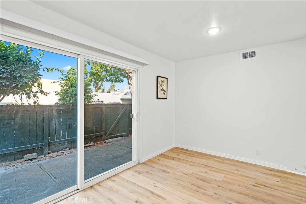 Step into style, comfort, and sophistication with this beautifully reimagined 2-bedroom, 2-bathroom ground-floor residence in the sought-after Aliso Creek Villas neighborhood. Perfectly situated in a serene, private location, this home offers the rare convenience of single-level living paired with the luxury of your very own fenced yard—an oasis for morning coffee, weekend gatherings, or simply unwinding in the California sunshine. Inside, every detail has been thoughtfully curated. Fresh paint and brand-new flooring create a crisp, contemporary canvas throughout. The gourmet kitchen is a showpiece, featuring gleaming quartz countertops, timeless white shaker cabinetry, high-end stainless steel appliances, and stylish hardware—blending modern elegance with everyday functionality. The primary suite is a tranquil escape, complete with a en-suite bath showcasing a beautifully subway-tiled shower. The secondary bedroom and bath echo the home’s modern updates, offering comfort for family, guests, or a home office. From its light-filled living spaces to its seamless indoor-outdoor flow, this home embodies effortless elegance. All of this is nestled within the charming, tree-lined Aliso Creek Villas community, with easy access to shopping, dining, parks, and commuter routes. A rare find that blends upscale design, a coveted ground-floor location, and an exclusive private yard—this is Lake Forest living at its finest.