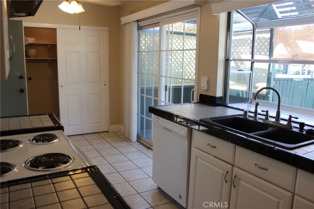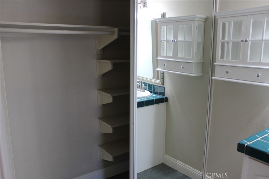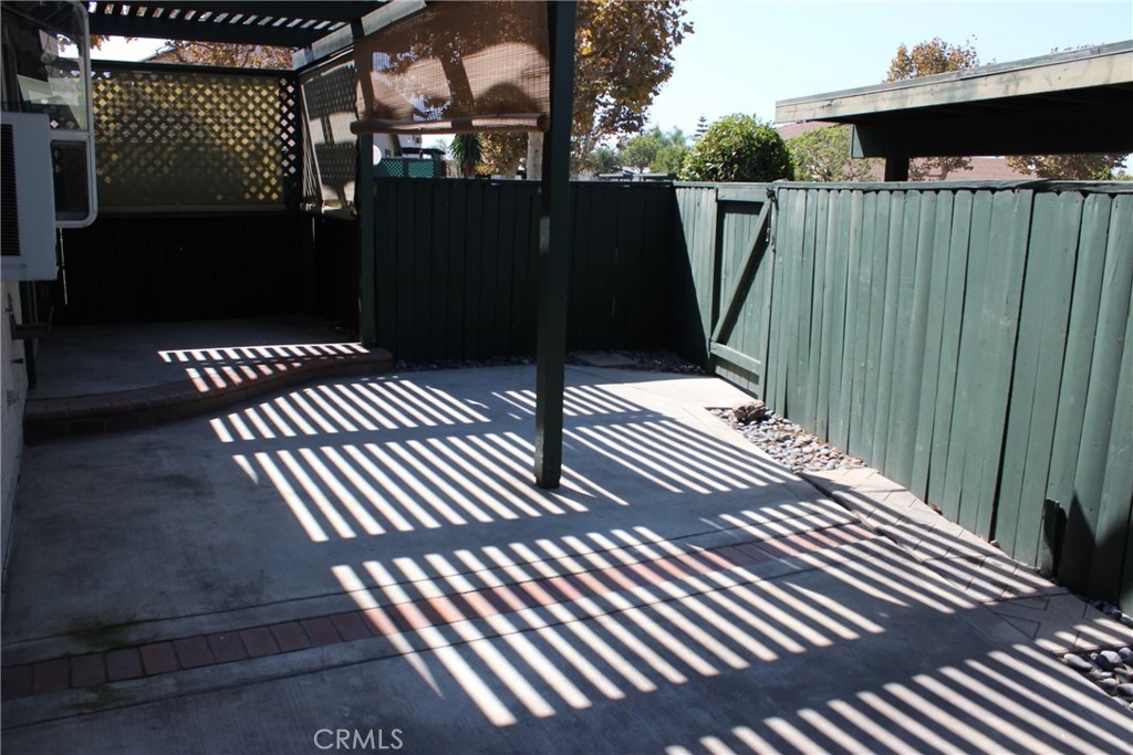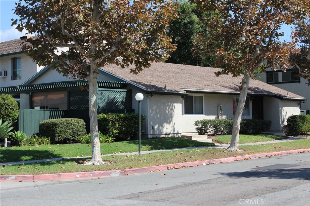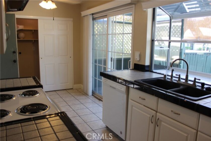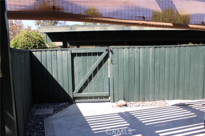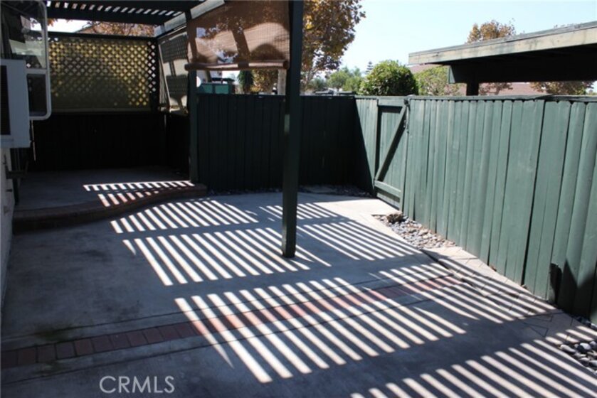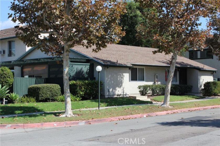 Rare single story one bedroom with awesome location, close to entrance, and no one above or below. Unique corner location with the ability to walk out from your oversized brick ribboned patio with cover and go directly to your carport outside. Dual pane windows and slider, tile flooring and laminate throughout, ceiling fans, and mirrored wardrobes are some of the upgrades. The unit has lots of extra storage including walk-in closet, large laundry room with extra shelving, full size washer & dryer access, AC unit in bedroom, and vertical blinds. Kitchen and bathroom vanity has tile counters and is light and bright. Seller is motivated and priced to sell.