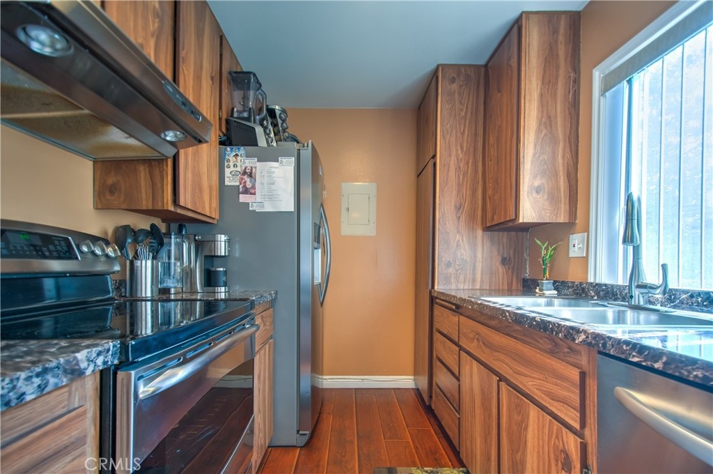 This is a beautifully remodeled lower unit with laminate wood flooring, recessed lighting, smooth ceilings, six panel doors, ceiling fan, mirrored closet doors, and stainless steel appliances. This property features a patio, inside laundry, walk-in closet and additional closet space. The Aliso Creek Villas community is not only affordable but is centrally located close to shopping, schools, and the 5 freeway. It has a playground and 3 swimming pools for great summer fun.