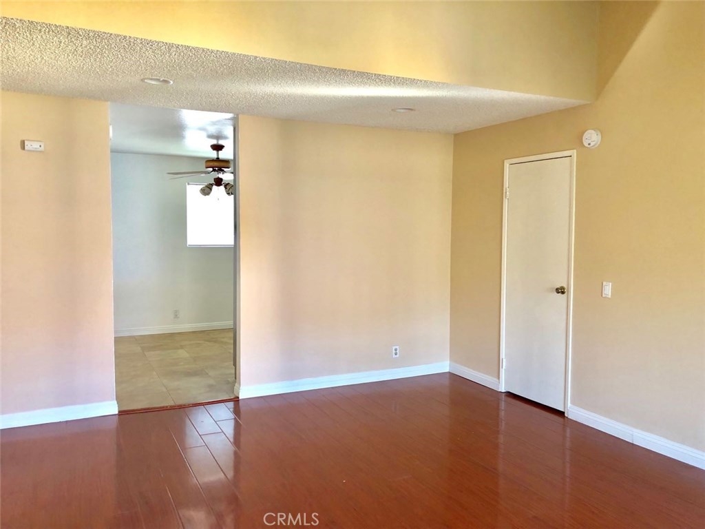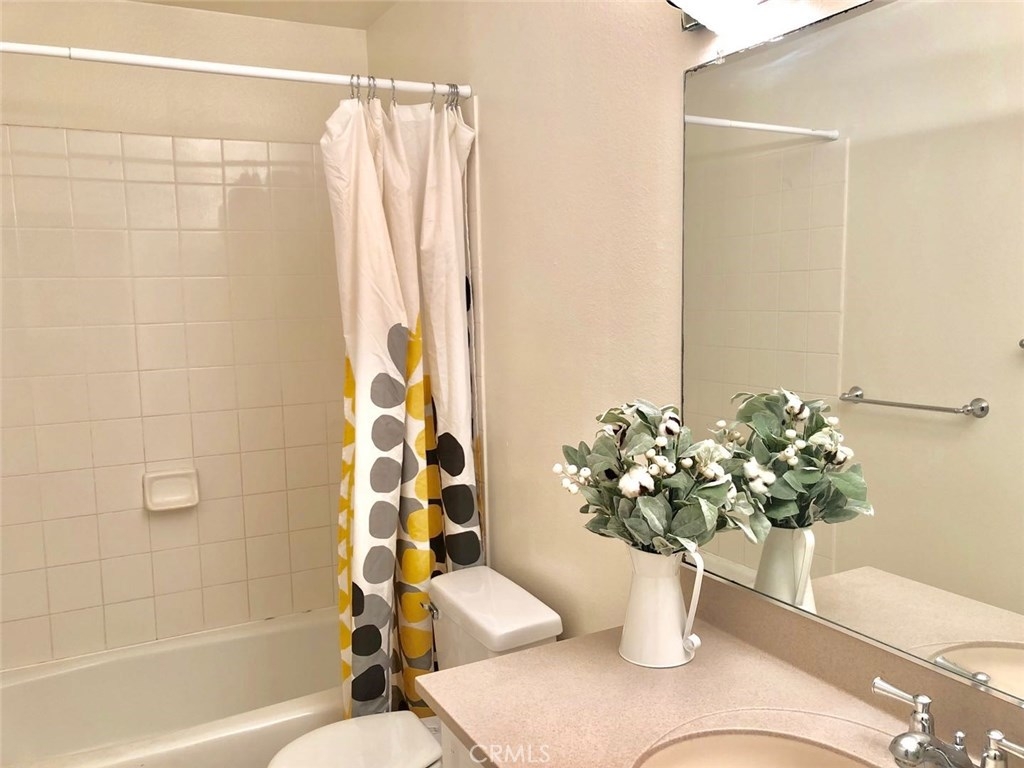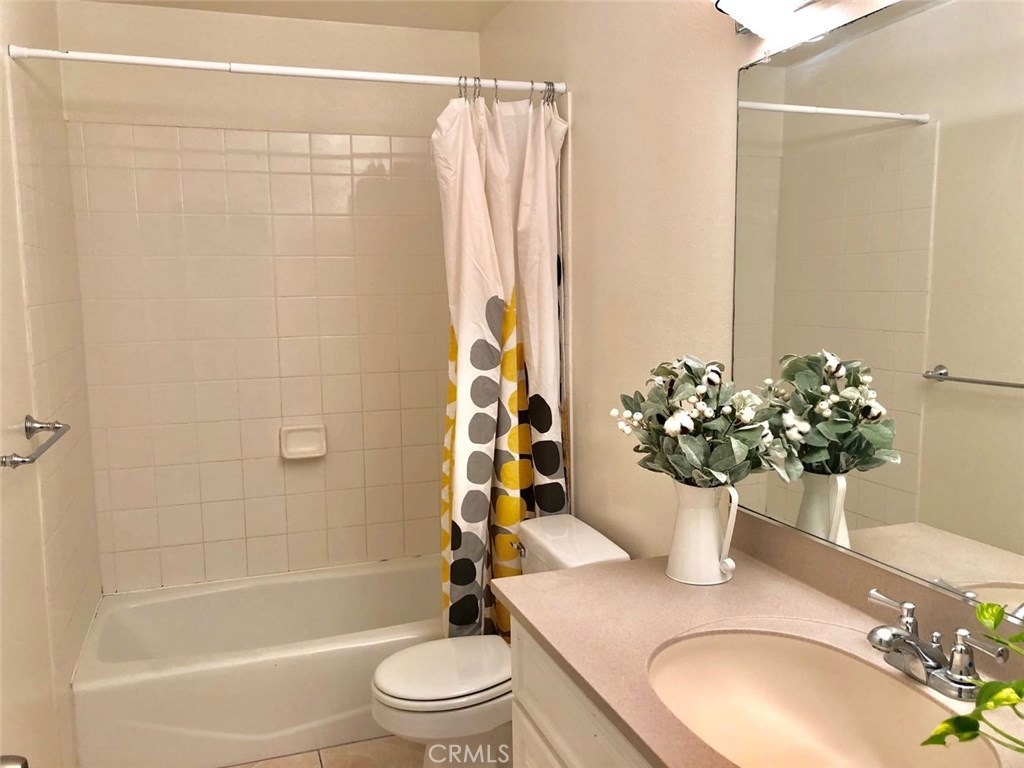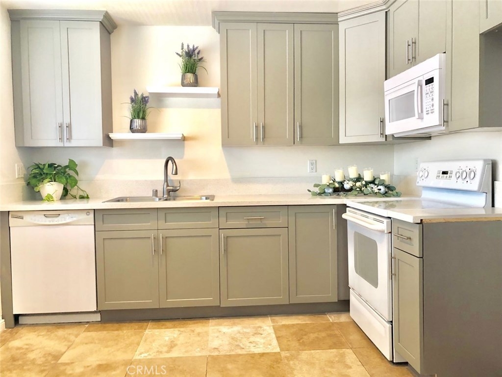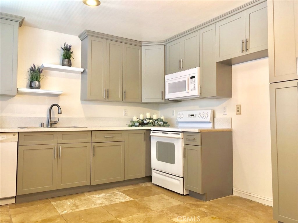 Great starter home in move in condition! This cozy freshly painted upper unit with a spacious kitchen, new cabinets, granite counter tops, brand new microwave, dishwasher and a large eating area.The living room has vaulted ceiling and leads to a balcony that has a convenient laundry room which fit a full size wash and dryer. The large master bedroom includes plenty of organized closet space. Association dues include water, trash and maintenance. Nice neighborhood, close to school, shopping center, entertainment and 5 freeway.