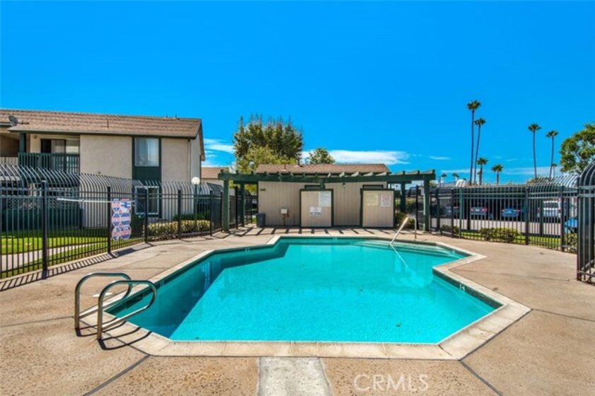 Must see beautifully remodeled, single story, end unit with vaulted ceilings and no one above or below. This house feels like a single-family home and is TURNKEY. There is an inside laundry area for a full-sized washer and dryer, four closets including one walk-in, and an enclosed private patio with a gate that leads to one of the three pools in the community. There is access to a large attic with plywood flooring for additional storage space. Updates include a completely remodeled kitchen with shaker style wood cabinets, large kitchen sink, 2020 appliances, new wood look porcelain tile flooring throughout, new dual sink vanity in bathroom, quartz countertops in kitchen and bath, 2 new ceiling fans, paint, keypad entry, new fixtures, and more.