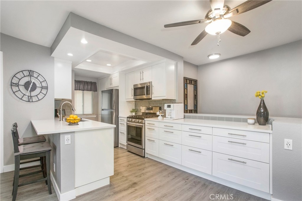 Beautiful Reimagined Luxe Condo Hits the Market! Step into a world of refined elegance where sophisticated design meets modern convenience. Boasting an expansive Open-Concept Layout, this residence seamlessly blends comfort and functionality, offering an effortless flow between the GOURMET Kitchen, Dining Area, and inviting Family Room. The Chef’s Kitchen is a true Showpiece, thoughtfully Redesigned to Open and Enlarge the space adding a sleek Breakfast Island and a wall of counters & extra cabinet space. Custom cabinetry w/elongated stainless steel hardware & pull out drawers provide exceptional storage, while Quartz countertops, Stainless Steel appliances, and designer finishes create an atmosphere of effortless luxury. State-of-the-art upgrades include a 5-burner Gas Range, Built-in Microwave, and elegant single-basin sink with a contemporary Stainless-Steel faucet, all complemented by a chic decorative backsplash and 2 USB-integrated outlets. Featuring "Dual Primary" Bedrooms, with one bedroom having its own "En-suite" Bathroom and Walk-in Closet. Each of the bedrooms has their own private access to the outdoor balcony, which extends the entire length of the residence making it a perfect setting to take in the breathtaking Saddleback Mountain VIEWS! Every detail has been meticulously curated, with updated bathrooms to include Newer Vanity & Fixtures, Lighting, Mirrors and Flooring. Other notable upgrades include: Laminate Wood Floors, Recessed Lighting with newer Light Switches w/Dimmers, Interior Paint, Ceiling Fans, Stainless Steel Hardware throughout (including Door Knobs), and 4" Baseboards throughout. Modern luxuries such as a NEST Thermostat, New Windows and Sliders, and a newer A/C Unit elevate the home’s efficiency and comfort. A spacious upper-level laundry room and an abundance of storage throughout ensures effortless living, while the ATTACHED 1-car garage with DIRECT ACCESS & Built-in Storage provides the ultimate in safety and convenience. Steps to 2 Community Pools/Spas and just a short stroll to the beautiful neighborhood walking trails, Peachwood Park & Tamarisk Sports Park where you'll find a Playground, Basketball Court, Baseball Field, Walking Path, Grassy Area & Picnic Tables. Conveniently located just a short drive to Lake Forest Sports Park & Recreation Center, Irvine Spectrum & Irvine Great Park. HOA fee includes trash. This rare offering is a true GEM so don’t miss your chance to view this SPECIAL property & make an offer today!