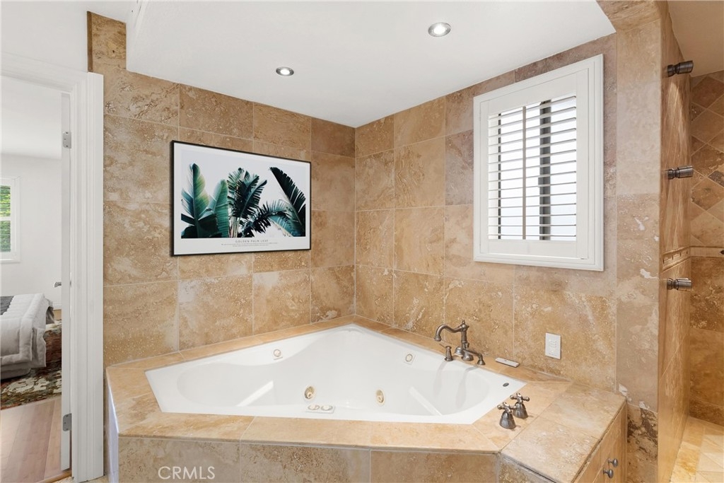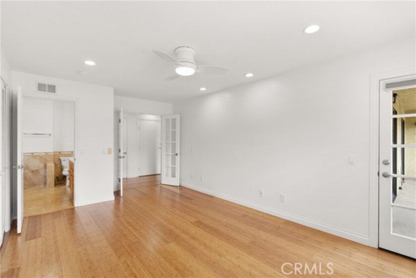 Experience privacy and convenience in the desirable Tierra Vista community. This single-level end unit sits on the upper floor to provide a peaceful retreat with two generous en-suite bedrooms. A private stairway greets you upon entry and offers direct access to the oversized one-car garage. Inside you will find warm bamboo flooring and recessed lighting throughout a bright and open layout. The kitchen features crisp white cabinetry and plantation shutters along with a cozy breakfast nook. Move out onto the covered balcony from the living room or either of the two bedrooms to enjoy the breeze. Both bedrooms feature full en-suite baths, while the larger suite serves as a spa-like retreat with a rainfall shower and soaking tub. The home offers generous parking options, including an attached garage, driveway parking for one car, one additional reserved space, and guest parking. Laundry hookups are conveniently located in the garage. Residents of Tierra Vista enjoy access to a pool and spa as well an HOA that includes trash service. The location makes life easy with a short stroll to the neighborhood park and local shops or dining less than a mile away. Offering comfort, convenience, and community, this home has it all.