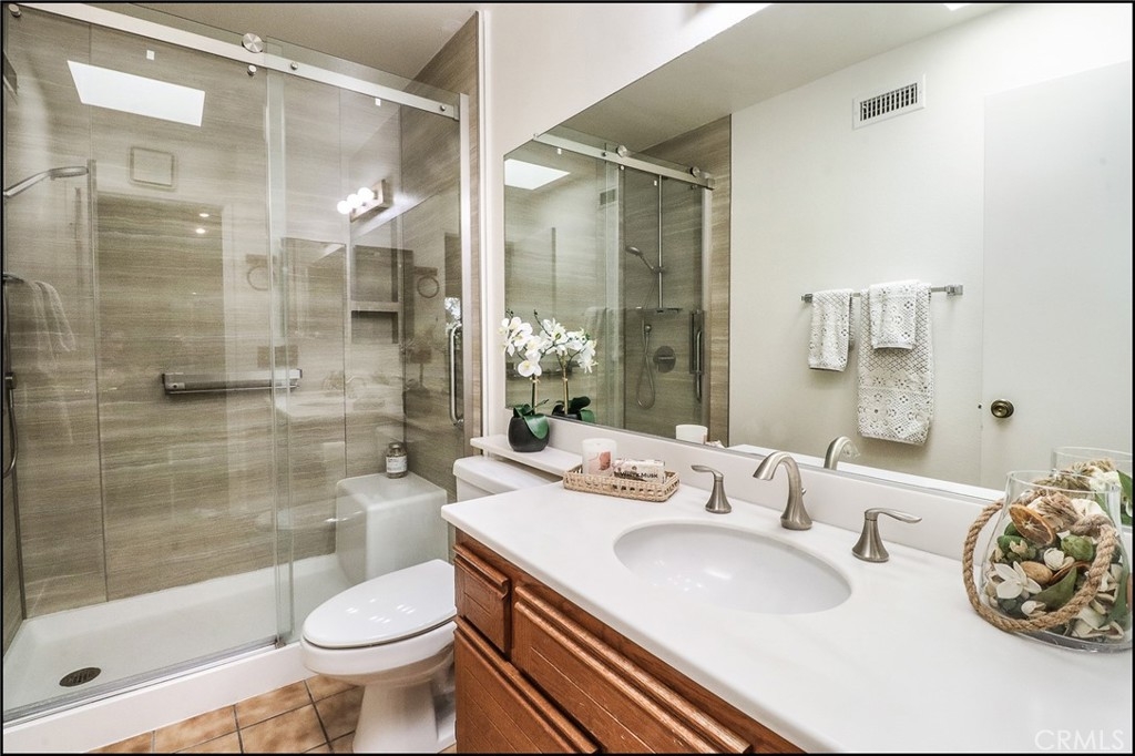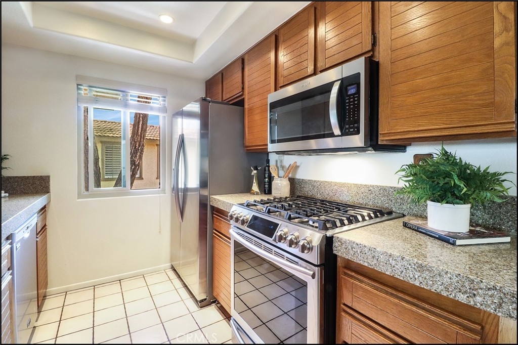 EXCEPTIONAL END UNIT LOCATION NEXT TO LARGE GREENBELT, ATTACHED GARAGE AND LONG DRIVEWAY! Awesome property featuring a private entry with foyer, large living and dining room opens to the delightful kitchen with upgraded countertops, stainless steel appliances, designer sink, faucet and recessed lighting. The spacious living areas also feature a large sliding door with access to the private deck with views of lush greenbelts. Large master suite and upgraded master bathroom featuring a walk-in shower with designer tile surround, frameless glass enclosure and upgraded fixtures. Large second bedroom and full second bathroom, conveniently located inside laundry room with upgraded obscure glass door, upgraded flooring and baseboards, upgraded dual glazed windows, updated HVAC system, repiped with PEX and so much more. All this plus the highly sought after Tierra Vistas tract within the Peachwood community offering a resort style pool and spa, walk to nearby parks with baseball field, playgrounds, BBQ areas, excellent proximity to shopping and Irvine Spectrum, easy freeway access (via Bake Parkway) and nearby hiking, biking and nature trails!