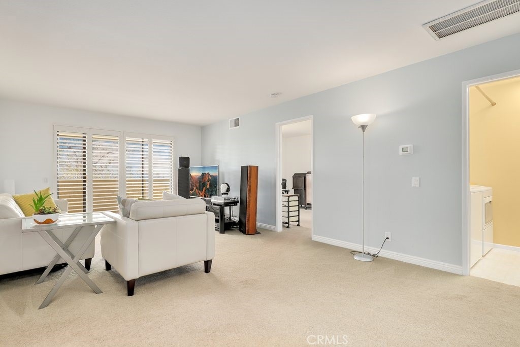 This bright and open condo located in the Tierra Vista neighborhood of Lake Forest is ready for its new owners! On the first level you'll find direct-access to the single-car garage with a tandem driveway parking space. Upstairs, this carriage unit offers great room style living: the living room seamlessly flows to the dining room and to the kitchen featuring stainless steel appliances. Light-catching sliding doors opens to the spacious and private balcony. Dual primary bedrooms each offer plenty of closet space and their own en-suite primary bathroom with granite-topped vanities. Just off the living room is a convenient, full-size laundry room. Enjoy the nearby community pool and spa. Welcome home!