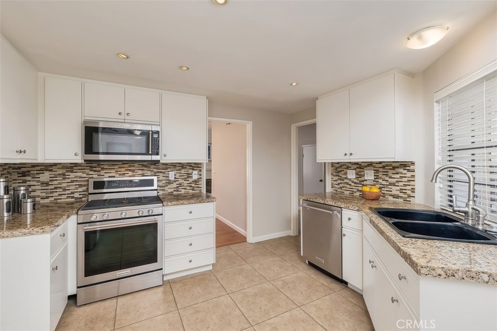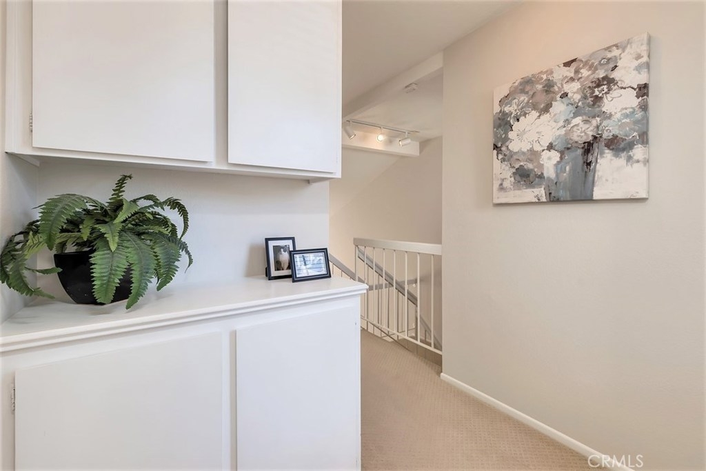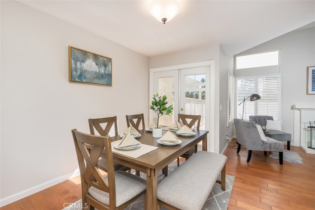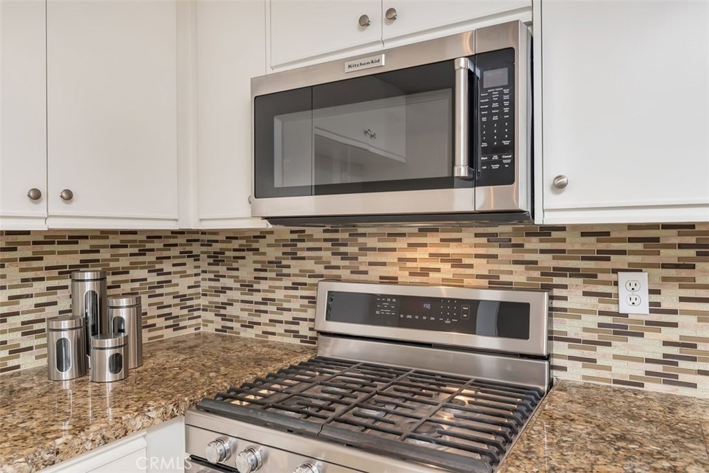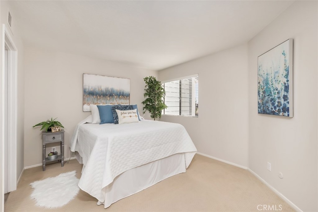 Gorgeous town house in desirable Hillsview Community. Immaculate & tastefully upgraded. Gated courtyard entry leads you into this beautiful home. Large living room with vaulted ceilings, plantation shutters, & cozy fireplace. Separate dining room with French doors leading to a large enclosed patio with no neighbors directly behind it. Updated kitchen with white cabinets, stainless steel appliances, granite counters & glass tile back splash. Breakfast nook for casual dining. The dramatic stair well leads you upstairs to two generous bedrooms each with a private ensuite bath featuring trending wide plank laminate flooring. The master suite features vaulted ceiling, dual vanities and two closets. Attractive plank wood flooring in the living room & dining room, 18” faux stone tile in entry, kitchen, nook & powder room, plush carpeting, plantation shutters, wood blinds & fresh light (grey/beige) paint add to the appeal of this home. Close to Irvine Spectrum and two large city parks including the newly renovated Tamarisk Park which includes a new baseball field, playground, basketball court, restroom facility and picnic area just up the street! Serrano Highland Association offers access to four tennis courts, basketball court, pool and spa. Minutes from 405 and 5 freeways, toll roads, Irvine Spectrum, local shopping & proximity to schools makes this location very desirable.