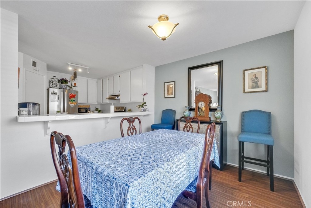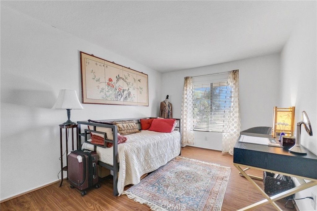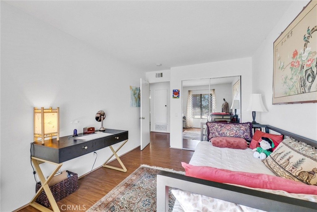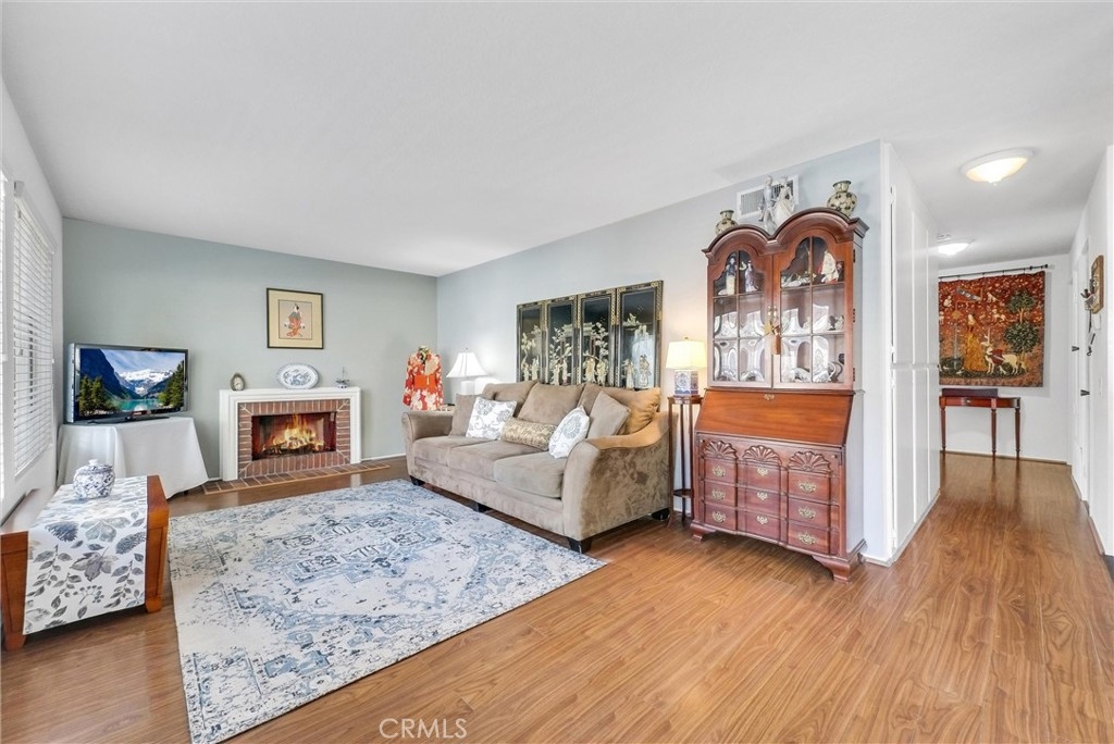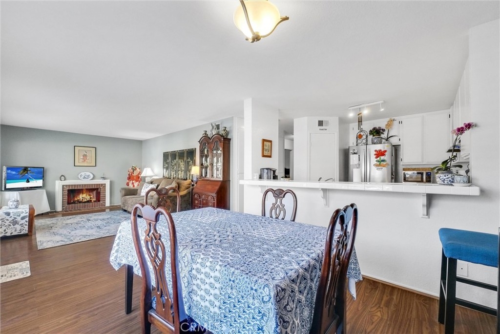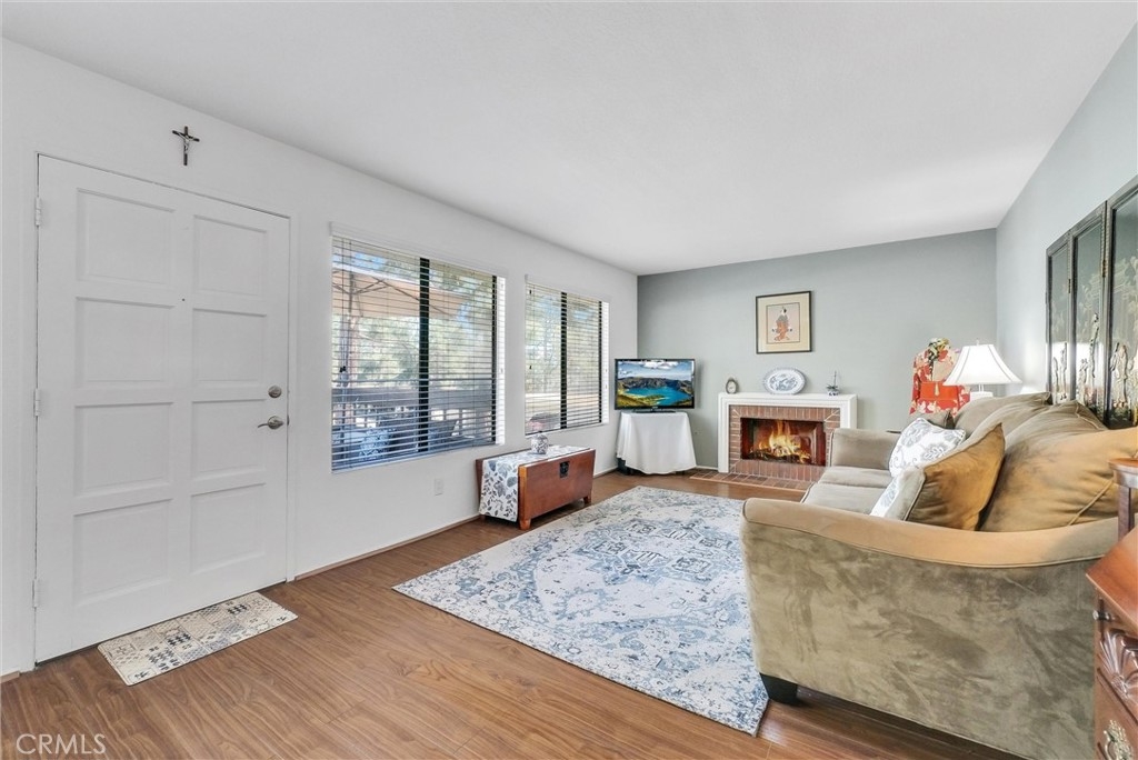 Upstairs unit with large Balcony located in Popular White Oak community and it is featuring 2 bedrooms 1 bathroom, laminate flooring throughout, stainless steel dishwasher, refrigerator and freestanding gas stove. Large Living room with fireplace, open to Dining room/area. Kitchen has a bar counter. Master bedroom with Walk in Closet, Large Bathroom with washer and dryer closet. Central air conditioning system. Walking distance to Elementary and High School. Close to shopping, public transportation, restaurants and a park. One carport with storage and one permitted parking space. Community pool and spa, with newer exterior paint and repiped plumbing.