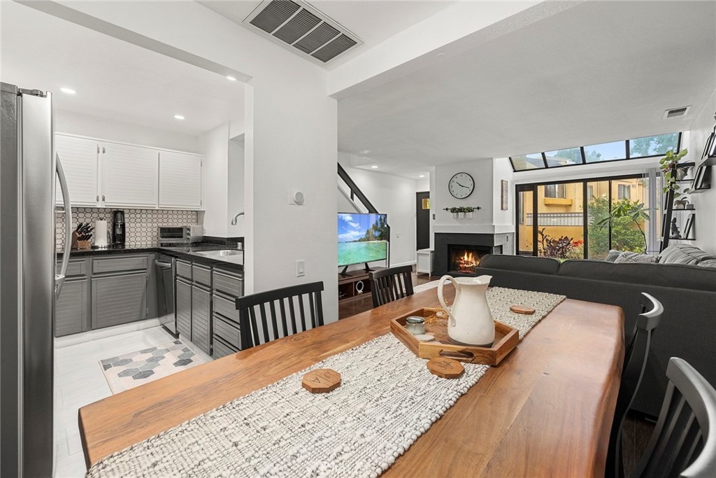 Stunning 2 story condo with it's own private courtyard . As you enter through a wrought iron gate, you are greeted by a private courtyard enclosed with a block wall. This also includes a grass and flower bed area. Go through the single front door and you will be in awe. The open plan living has been updated and meticulously taken care of. Enjoy the large living area that is flooded by natural light and has a fireplace for those cozy evenings and sliding doors with views to the grassed courtyard. The dining room area is large enough to host great dinner parties. The kitchen is open and has been updated with stunning granite counter tops. As you walk up to the 2nd floor , there is a large bedroom with an adjoining loft that can be used as a office or a baby room. There is a full bathroom, walk-in closet and a washer/dryer closet that completes the 2nd story. The garage is detached from the condo but does provide a 2 car garage which is unusual as many only have 1. The Le Parc community offers use of 3 pools and covers water usage , Trash, and the Le Parc community has been repiped for that added assurance. This location is ideal as its walking distance to a park, shopping and easy access to freeways, Irvine spectrum and Airport. This makes it ideal, whether it's your first home or downsizing as it's move-in ready.