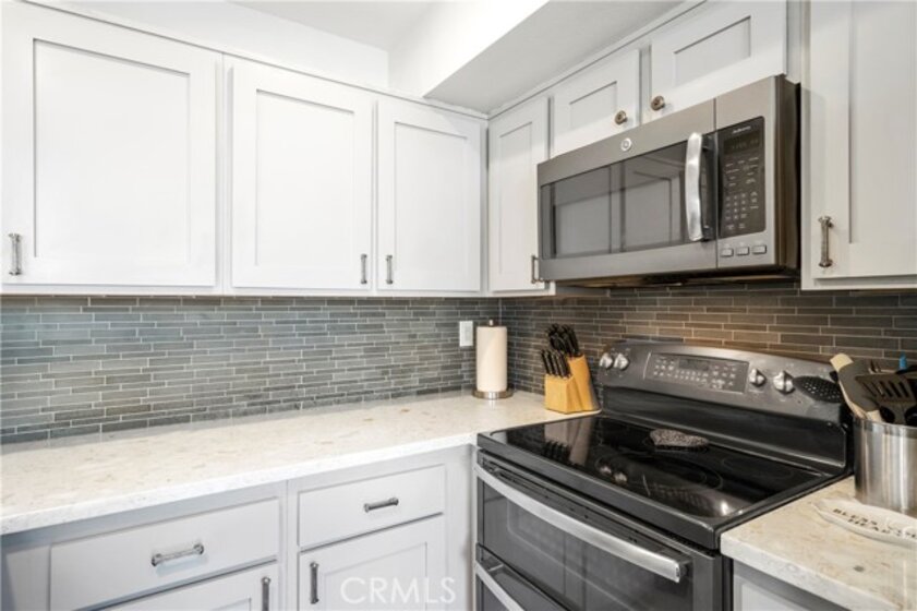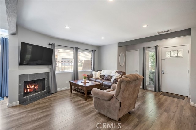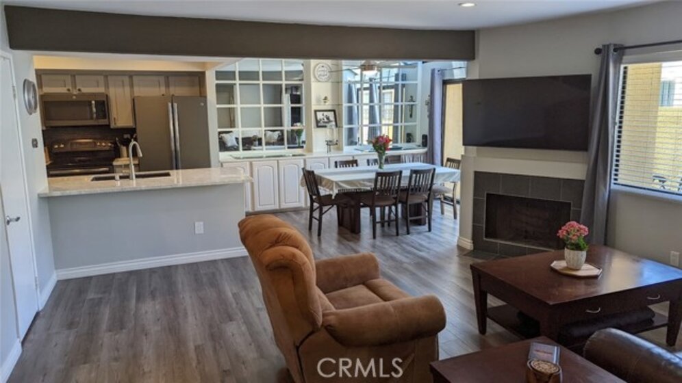 Open floorplan! Water and trash covered by HOA dues! Kitchen appliances and washer/dryer included with purchase! This lovely home is an end-unit with no one above or below and is located in the highly desired Le Parc community of Lake Forest. It boasts warm gray, vinyl wood plank floors, wood blinds, and an open floorplan that gets plenty of natural light during the day! There is recessed lighting throughout the downstairs and outside the bedrooms. A convenient half bath is located downstairs, a 3/4 bath is outside the spare bedroom, and full bath in the primary bedroom. The open living room includes a wood burning fireplace and flows seamlessly to the dining room and kitchen. The dining room features light-catching skylights and sliding doors to the spacious and private back patio. The kitchen has beautiful quartz countertops, grey cabinets, a bar countertop, and modern appliances. Upstairs are the carpeted bedrooms, the 3/4 bath, and the full bath. The large primary bedroom has vaulted ceilings and offers a large en suite with recessed lighting in the walk-in closet. Ceiling fans are located in the main living area and in both bedrooms. This beauty has been freshly painted throughout and the acoustic (popcorn) ceilings have been scraped. Last year, the home was re-piped with PEX piping and the AC was refurbished. Enjoy the three, resort-style community pools and spas with one of the pools just steps away. HOA amenities include the club house, greenbelts, walking paths, BBQs, and water/trash. A private, two car detached garage is conveniently located close to the home and there is plenty of community and street parking nearby. Easy access to the 5 freeway and toll roads, restaurants, stores, and minutes away from beach cities. Don't miss out on this great opportunity! Seller is motivated. Make an offer!