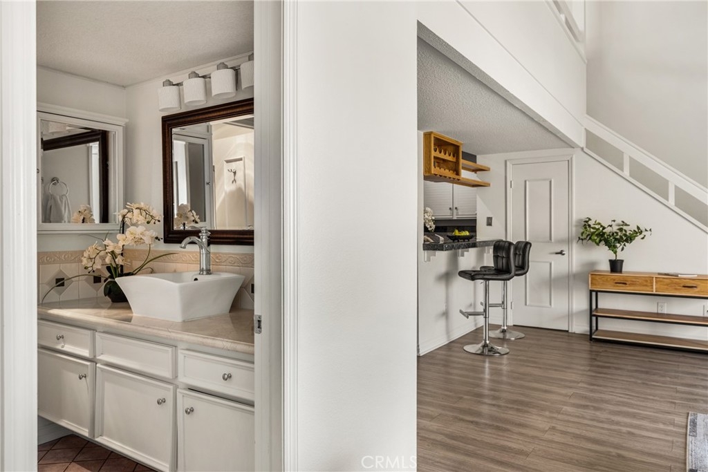 Soaring ceilings, abundant natural light, and a unique layout in the heart of Lake Forest. This beautifully upgraded residence features an open-concept design with dramatic vaulted ceilings, a spacious living room with a cozy fireplace, and seamless access to one of two private balconies, perfect for indoor-outdoor living and entertaining. The kitchen is both functional and stylish with new kitchen appliances such as the fridge and stove, showcasing granite countertops, stainless steel appliances, ample cabinetry, and a breakfast bar that flows into the dining area. A standout feature is the loft-style bedroom, offering a distinctive architectural feel with comfort and privacy, complemented by multiple bathrooms with clean, modern finishes. Additional highlights include central heating and air conditioning, in-unit laundry, generous storage, a detached garage, and additional parking. Located in the highly desirable Le Parc community, residents enjoy resort-style amenities and a prime location near shopping, dining, parks, and major freeways.