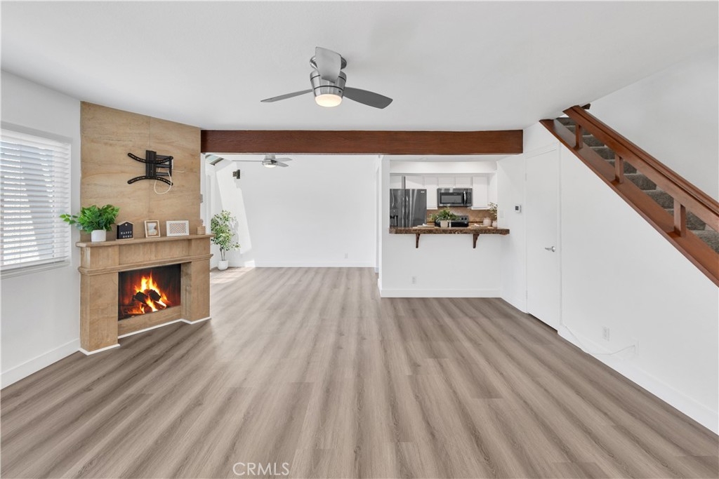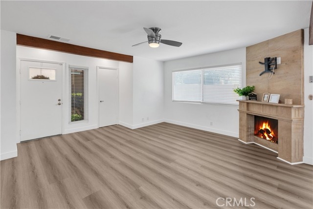 Incredible 2 bedroom 2 1/2 bath townhouse in the heart of Lake Forest. Spacious open floor plan with plenty of natural light. This home boasts high ceilings, remodeled windows, newer a/c, designer paint, laminate flooring on the main level and newer carpet on the second level. The kitchen offers plenty of cabinets and a large dining area overlooking the wrap around patio with custom pavers and ample privacy. Downstairs powder room for guests. The second level offers a huge primary bedroom with walk in closet, ceiling fan, high ceilings and dual sinks in the primary bathroom and a brand-new water heater installed 6/20/2024. There is a detached two car garage, beautiful community pools throughout. The community is well maintained, home is an end unit which offers more privacy. Close to shops, parks, restaurants, freeways, schools and much more!