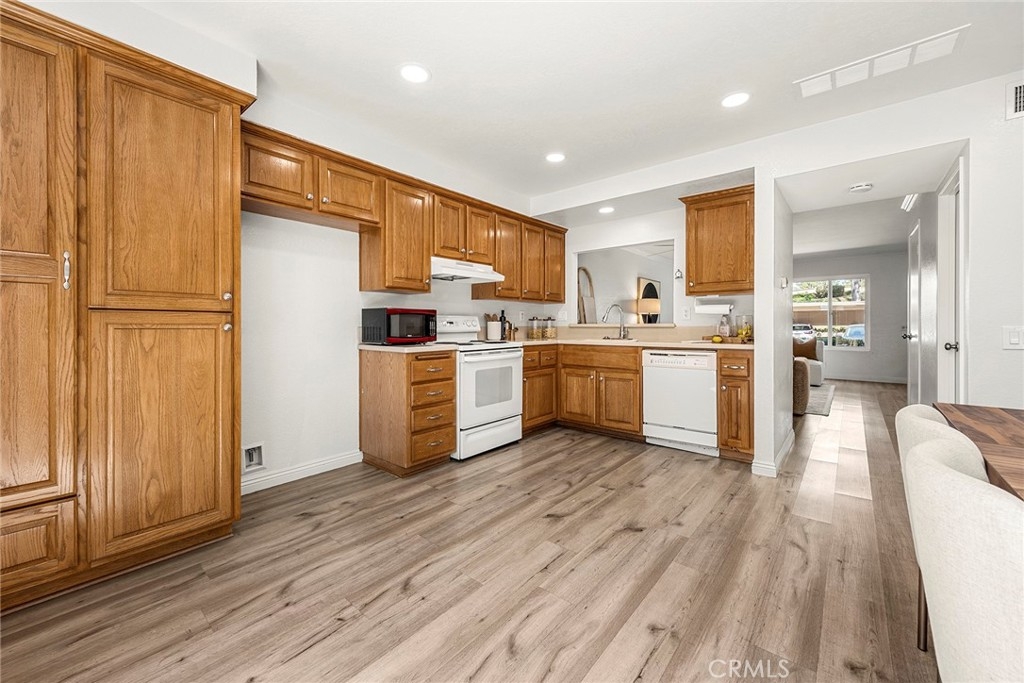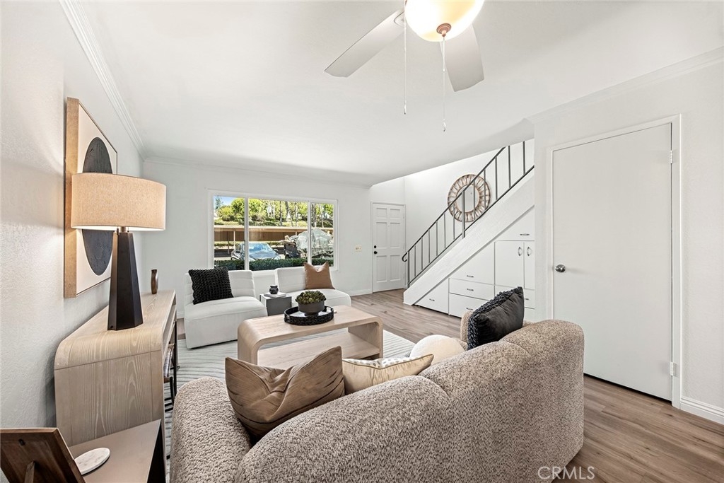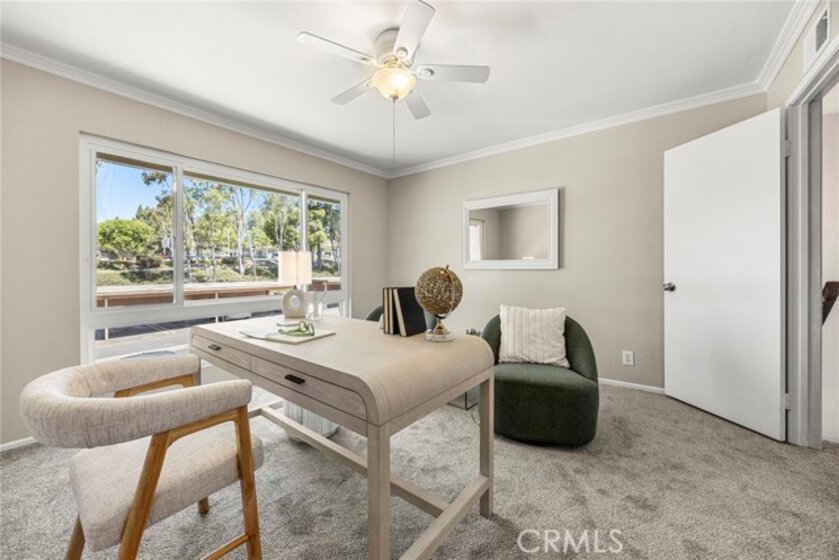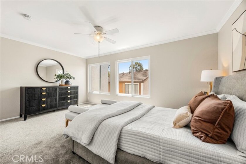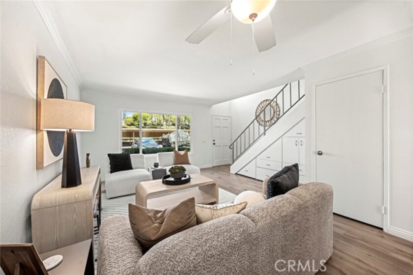 Welcome to Cedar Glen—your move-in-ready home in one of the area’s most convenient and desirable communities. This beautifully updated unit features two spacious bedrooms, one full bath, and an upstairs laundry area with a washer and dryer included. The main level offers an open-concept living space that flows seamlessly into a bright, refreshed kitchen and out to a private entertainer’s patio. Perfectly positioned on the outskirts of the community, this home provides easy access to parking and sits just steps from the Aliso Creek Trail, ideal for morning walks or weekend bike rides. Cedar Glen offers a sparkling pool, clubhouse, and well-maintained grounds. HOA dues include water, trash, basic cable, pool access, and exterior maintenance for added peace of mind. Fresh paint, new carpet, and a dedicated carport with extra storage make this home truly turnkey. Enjoy being moments from shopping, dining, freeways, and everyday conveniences—this is the one you’ve been waiting for.