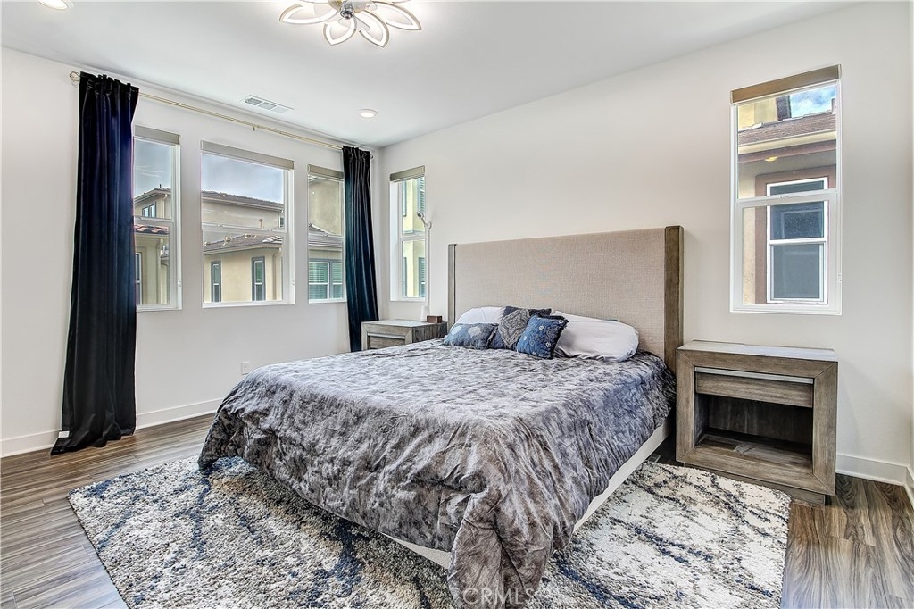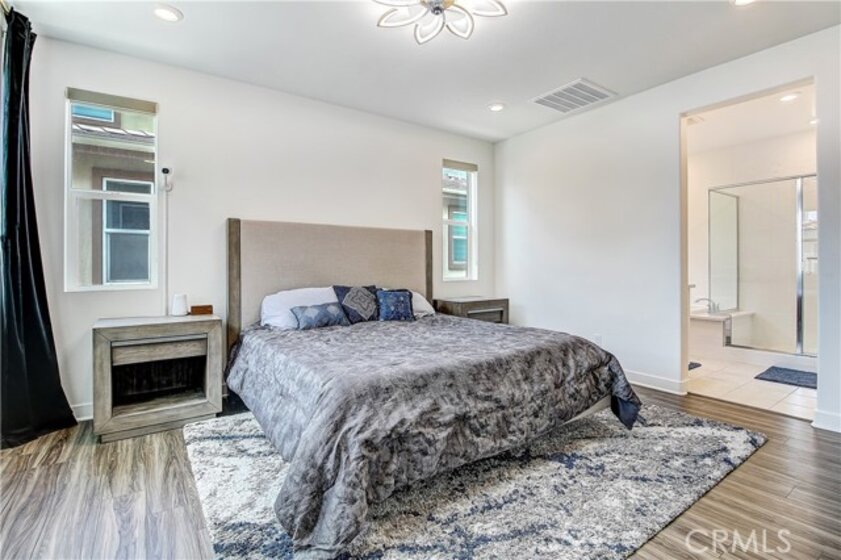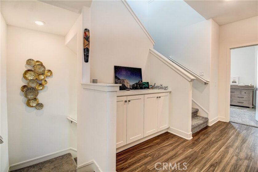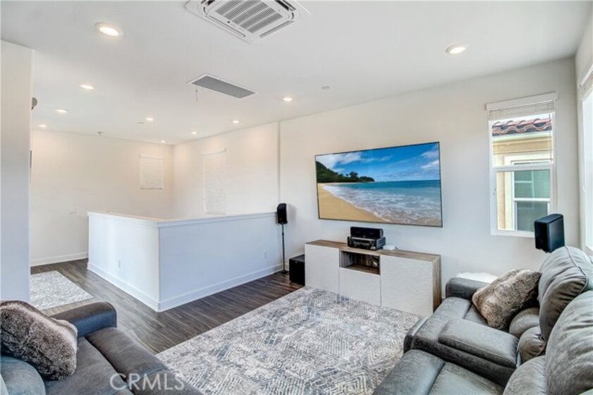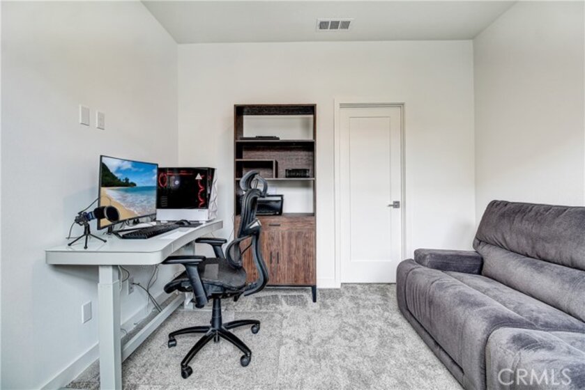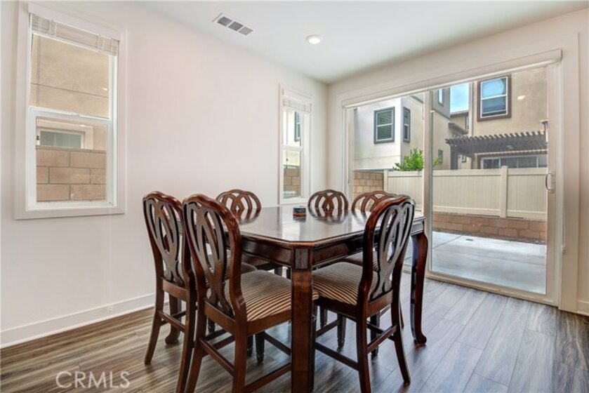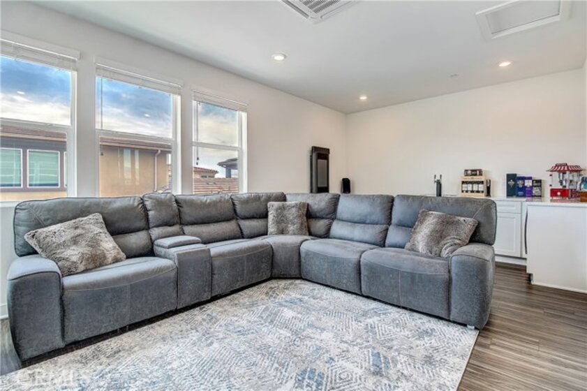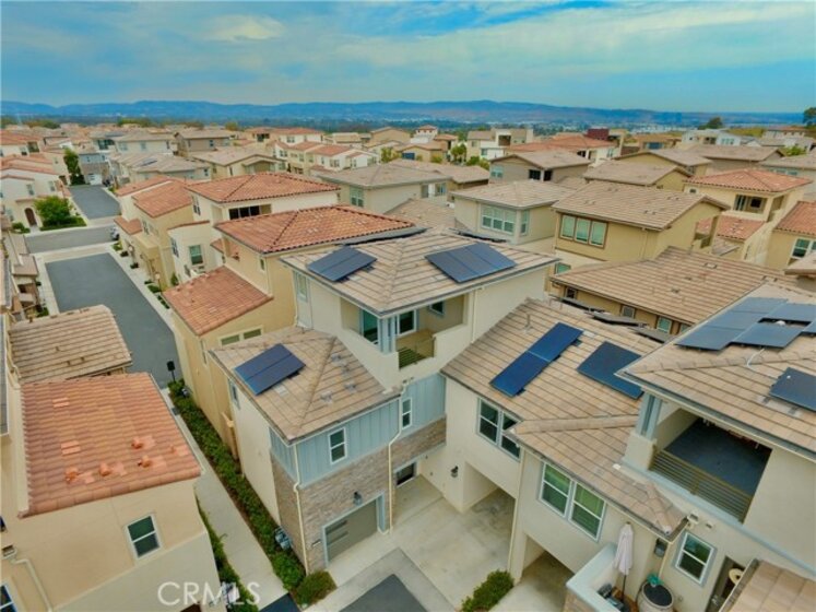 This stunning 3-story home, built in 2021 and situated in the prestigious Serrano Summit community, offers a rare combination of modern design and financial efficiency with No Mello-Roos and a low tax rate. Spanning approximately 2,401 square feet, the residence features 4 spacious bedrooms, 3.5 elegantly appointed bathrooms, and a versatile third-floor loft complete with a private balcony and custom mini-bar—ideal for an executive home office, game room, or private theater. The open-concept main level showcases a sleek, contemporary kitchen adorned with quartz countertops, soft-close cabinetry, an upgraded designer backsplash, and luxury vinyl plank flooring throughout for effortless entertaining. All bedrooms are thoughtfully positioned on the second level, including a primary suite with recessed lighting and a spa-inspired bath boasting floor-to-ceiling tiled shower walls. The property is packed with high-value upgrades, including a fully paid-off 20-panel solar system, a tankless water heater, a whole-house fan, and two separate garages with a private driveway—one equipped with an EV charging station. Step outside to a low-maintenance backyard or enjoy resort-style community amenities including a pool, spa, clubhouse with outdoor kitchens, pickleball courts, and scenic firepits with stunning views. Modern, refined, and move-in ready—this is California living at its finest.