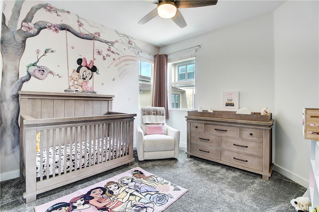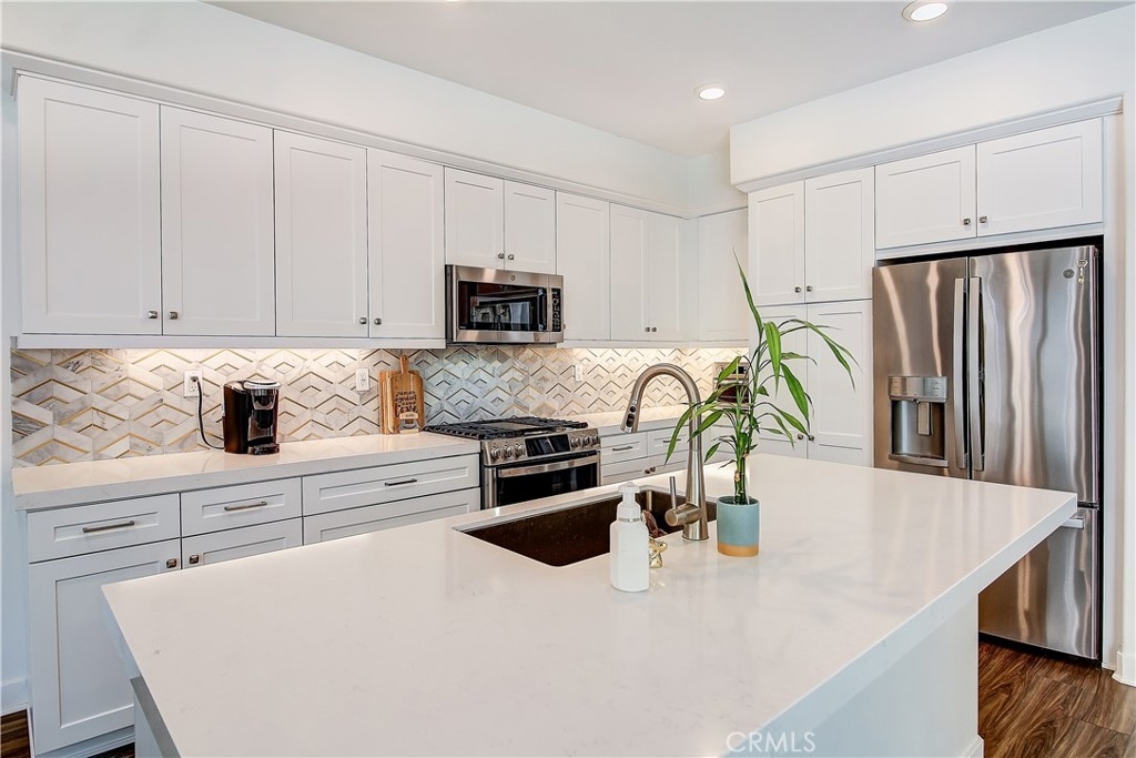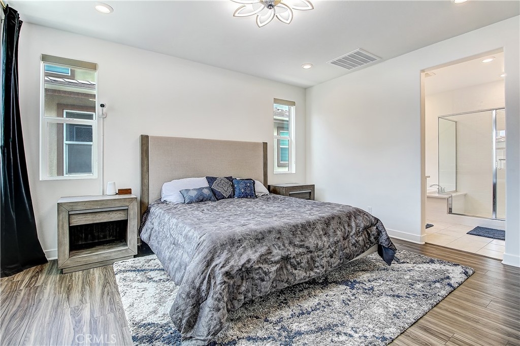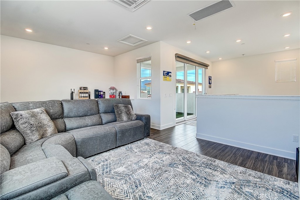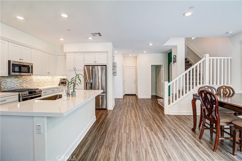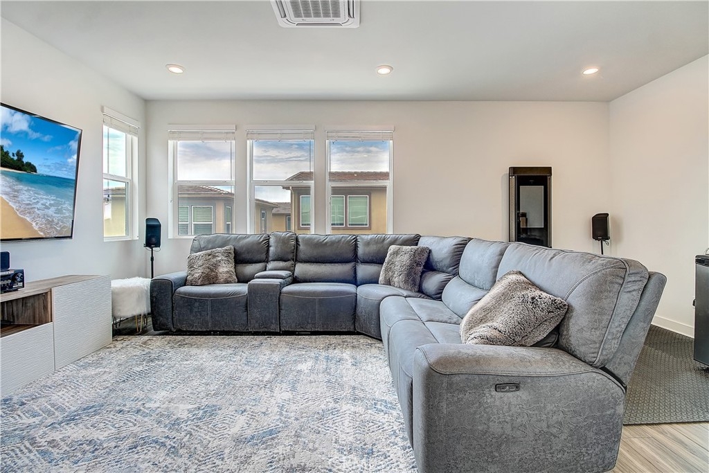 This stunning 3-story home, built in 2021 and situated in the prestigious Serrano Summit community, offers a rare combination of modern design and financial efficiency with No Mello-Roos and a low tax rate. Spanning approximately 2,401 square feet, the residence features 4 spacious bedrooms, 3.5 elegantly appointed bathrooms, and a versatile third-floor loft complete with a private balcony and custom mini-bar—ideal for an executive home office, game room, or private theater. The open-concept main level showcases a sleek, contemporary kitchen adorned with quartz countertops, soft-close cabinetry, an upgraded designer backsplash, and luxury vinyl plank flooring throughout for effortless entertaining. All bedrooms are thoughtfully positioned on the second level, including a primary suite with recessed lighting and a spa-inspired bath boasting floor-to-ceiling tiled shower walls. The property is packed with high-value upgrades, including a fully paid-off 20-panel solar system, a tankless water heater, a whole-house fan, and two separate garages with a private driveway—one equipped with an EV charging station. Step outside to a low-maintenance backyard or enjoy resort-style community amenities including a pool, spa, clubhouse with outdoor kitchens, pickleball courts, and scenic firepits with stunning views. Modern, refined, and move-in ready—this is California living at its finest.