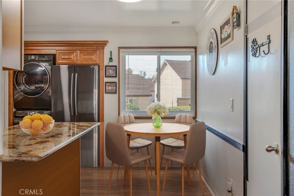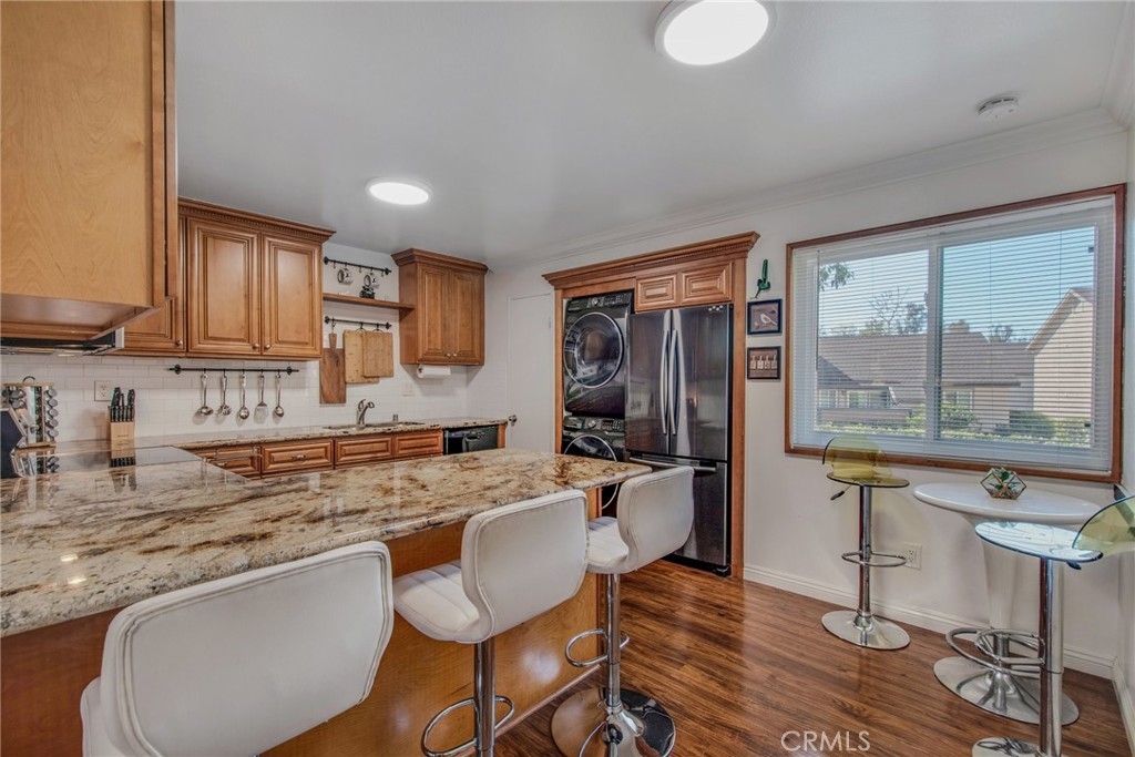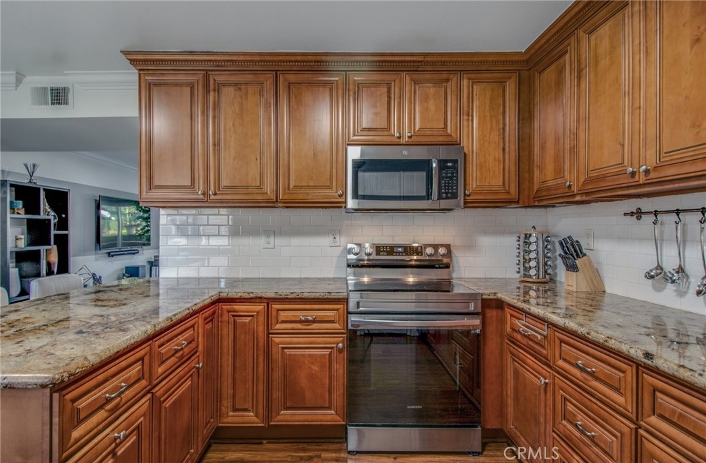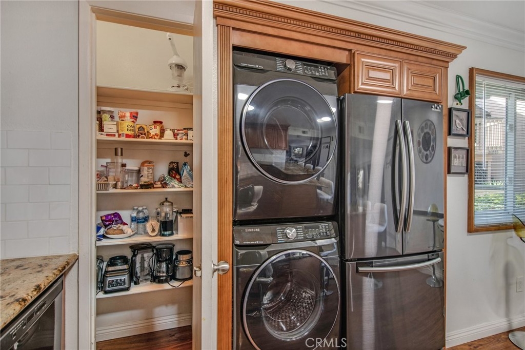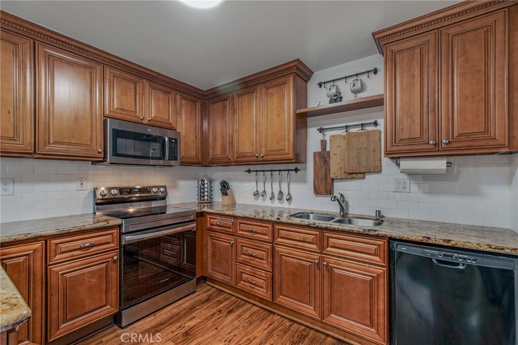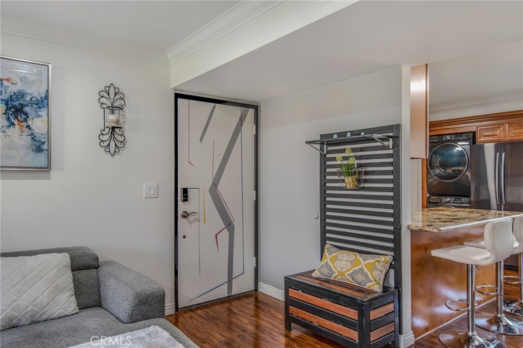 Welcome to your dream home! This exquisite residence boasts an abundance of natural light, creating a warm and inviting atmosphere throughout. The highly upgraded kitchen is a culinary haven, featuring wooden cabinets, a spacious granite counter top and an expansive pantry. Enjoy modern living with recently replaced appliances and energy- efficient recessed lighting throughout, complete with dimmable LED bulbs. Indulge in the convenience of inside laundry, and revel in the spaciousness of two well-appointed bedrooms adorned with large closets. Storage is ample, ensuring a clutter-free living space. Nestled in a serene and quiet community, your peace of mind is further enhanced by an electronic door lock and an outdoor camera. Take advantage of the inclusive water and trash services through the HOA, and welcome guests effortlessly with plenty of available parking. The community offers a resort-like experience with a sparkling pool, rejuvenating spa, and a clubhouse for social gatherings. Embrace the outdoors with double-pane windows and a sliding door, providing energy efficiency and tranquility. Located near Irvine, The Home Depot, Whiting Ranch Wilderness Park, hiking trails, markets, fine dining, entertainment and easy freeway access, this home seamlessly combines luxury and convenience. The enclosed patio is perfect for savoring a glass of wine and firing up the BBQ. Elevate your daily routine with a renovated bathroom, completing the picture of a home that is both stylish and functional. The single level layout feels much, much bigger than its actual SqFt; come out and see it for yourself. Your dream home awaits!