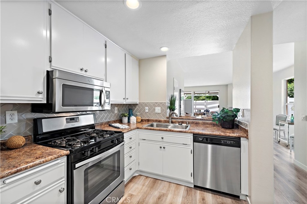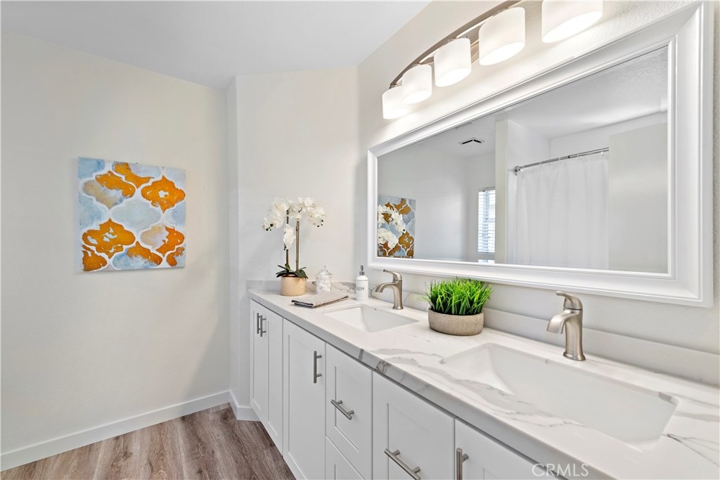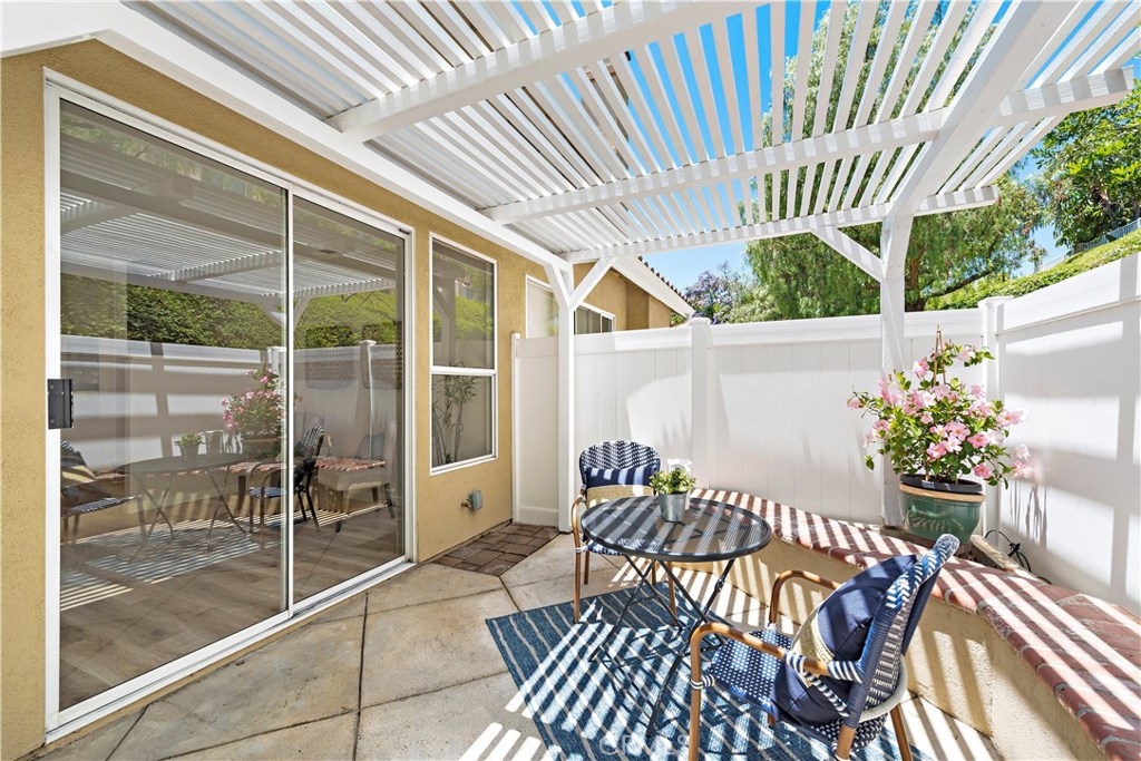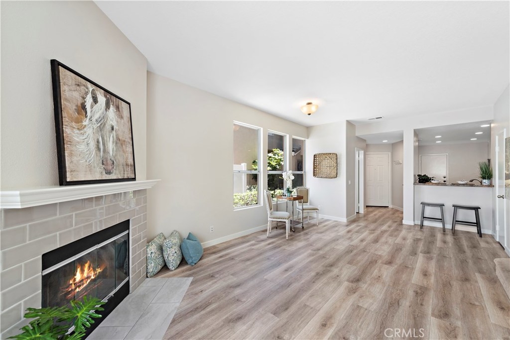 BEAUTIFULLY UPGRADED 2 BED/2.5 BATH home in GORGEOUS PORTOLA HILLS, w PRIVATE & PEACEFUL GATED BACKYARD, fresh paint throughout, new laminate flooring, and upgraded baseboards. Walk into this light bright beautiful home, and you'll be ready to move in! The natural light that the several windows & sliding door provide, make it a cheerful setting. It's an open floorpan, so the spacious kitchen, w stainless appliances, looks out to the sizable family room, with charming upgraded fireplace, and plenty of room to gather. Step through the door, and find yourself on the back patio, with custom built patio cover, for a shady, relaxing area. Upstairs, the master bedroom is large, with mirrored closet doors, & the master bathroom has a new vanity, countertop, fixtures, and lighting. There is a big secondary bedroom, w en suite bathroom for privacy. This home is in a lovely, safe neighborhood, with excellent schools, and an amazing environment. Lots of hiking/biking trails nearby, and toll-road close. And, the association fee is one of the lowest around!!