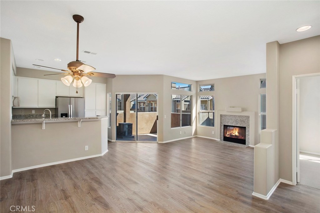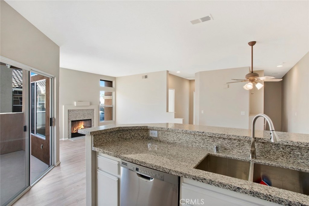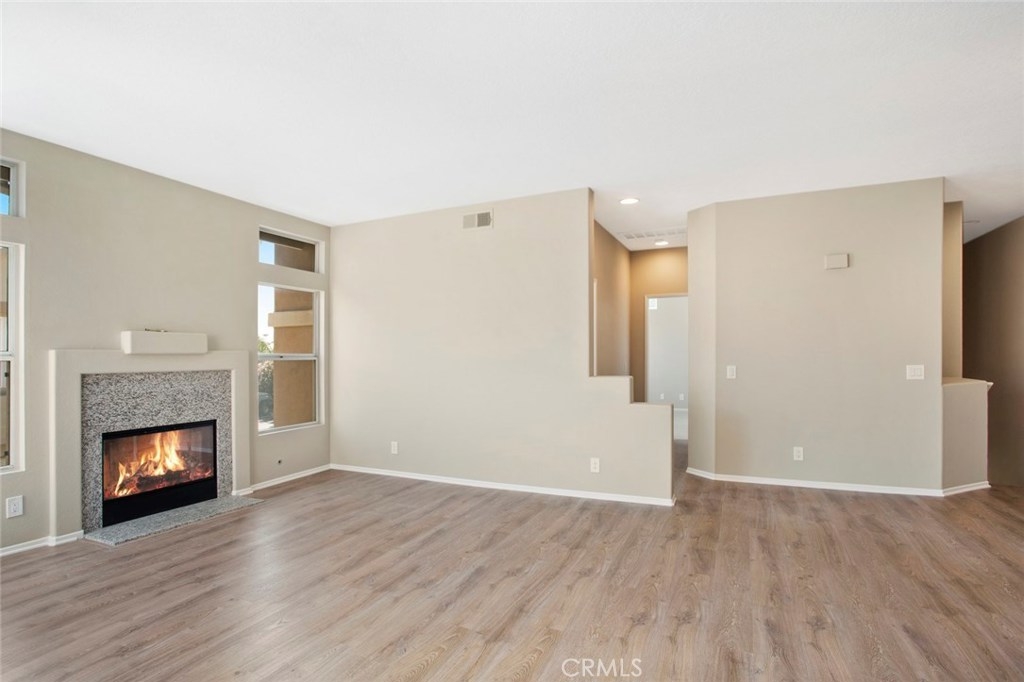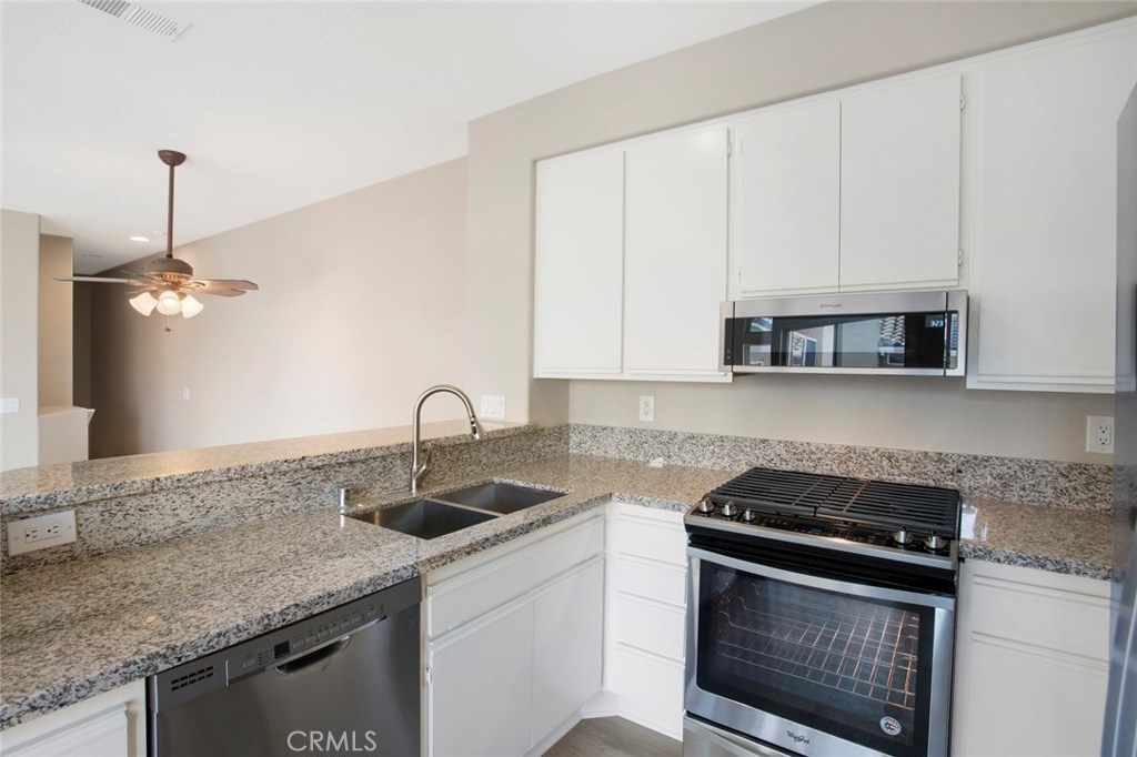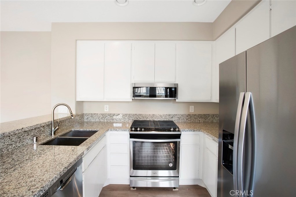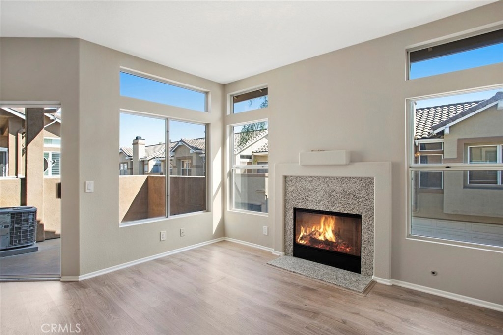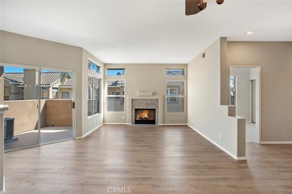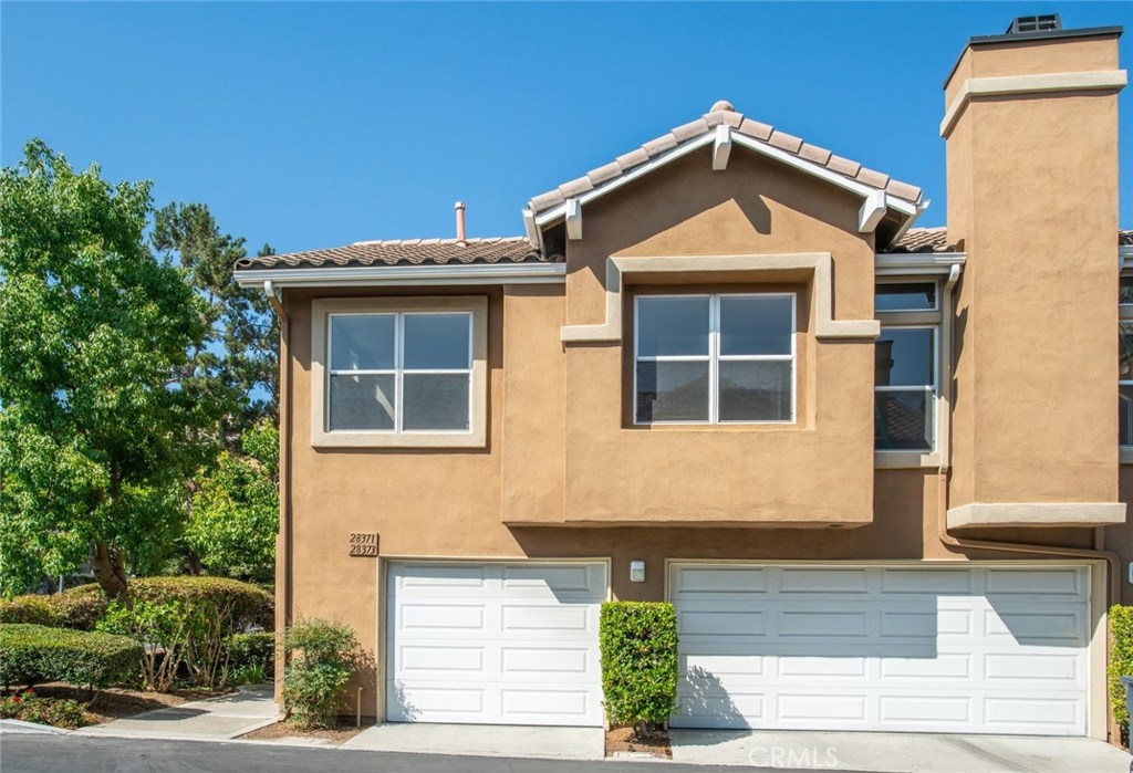 Stunning and highly sought after carriage end unit has been remodeled top to bottom. New flooring, new paint, new appliances, new granite counters, new mirrors, new closet doors, new faucets, new sinks, and the list goes on. This condo features 2 large bedrooms and 2 baths. Open concept floorplan with chef's kitchen, dining area, and living room with fireplace. Designer appointments include new hardwood laminate floors, and designer paint throughout, brand new kitchen with granite countertops and backsplash. The large master bedroom and bath has separate vanity with bathtub/shower combo. Second guest room has new mirrored wardrobe and guest bath features walk in shower. Additionally there is a spacious balcony perfect for entertaining. Enjoy neighborhood views from every vantage point. One car attached garage has easy direct access to unit. Montecido offers its residents a beautiful resort style pool area with amazing views. Conveniently located near hiking and biking trails, 241 Toll Road, theaters, shopping and dining.