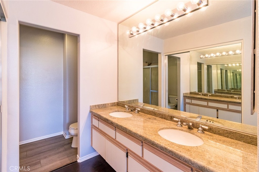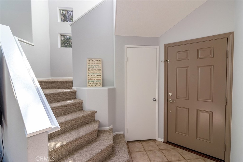 Welcome to this move-in ready, inside unit home in the Montecido community of Portola Hills. Freshly painted in modern gray and white tones, this light and bright home welcomes you in from the moment you step through the door. Vaulted ceilings and plenty of natural light add volumes to the living room. Even the cozy fireplace has a tile accented surround. Roomy bedrooms with one on the main floor and two upstairs. Master and second bedroom upstairs have ensuite bath and the master has a walk in closet ready for you to customize to your needs. Ecobee smart thermostat keeps the temperature perfect from your phone. The inside laundry room leads to the two car garage. The cozy patio is perfect for parties and entertaining and the view across the valley from the master bedroom is amazing. The community features clubhouse, pool, spa, exercise room, and gated tot-play lot. It's close to mountain and canyon recreation areas and the Cleveland National Forest. Just a short drive to the 241 toll road and just minutes from the entertainment, shopping and commerce of Lake Forest, Mission Viejo and Irvine.
