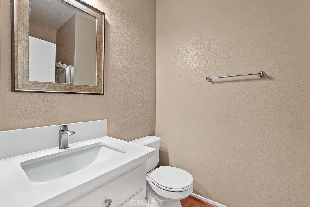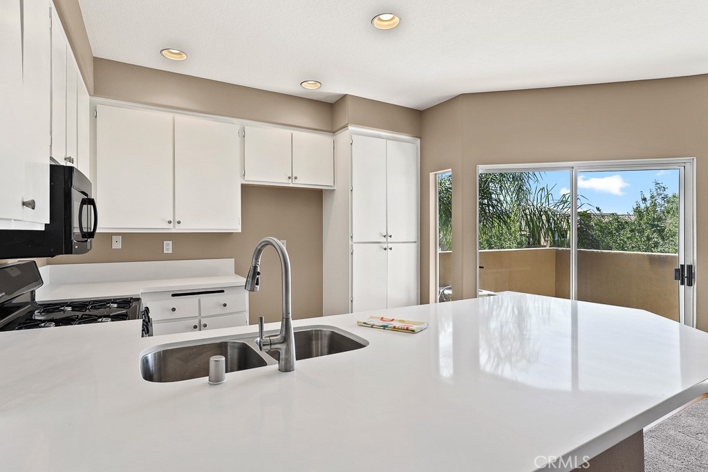 This winner has it all, location and condition! New white quartz counters throughout, fresh light paint throughout, some new modern light fixtures and ceiling fans, new upgraded bath fixtures, new light neutral carpet, wood laminate flooring, etc. etc.! Open concept light, bright and airy floorplan! Private balcony for family BBQ's! Attached direct garage access! Upper end unit in a premium private location! Near association amenities! Super low association dues and No Mello Roos! Better come quick or you'll be very sad if you miss out on this one!!!!
