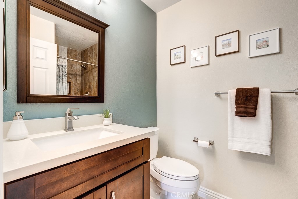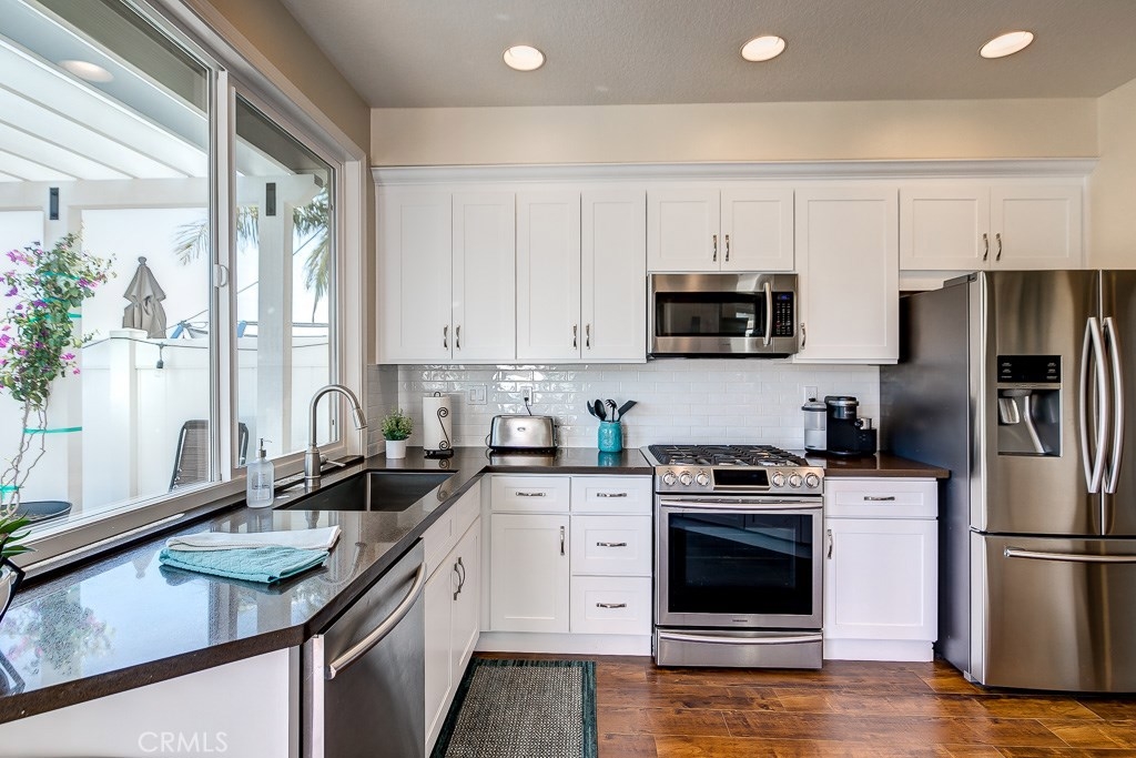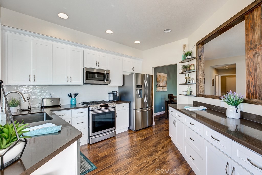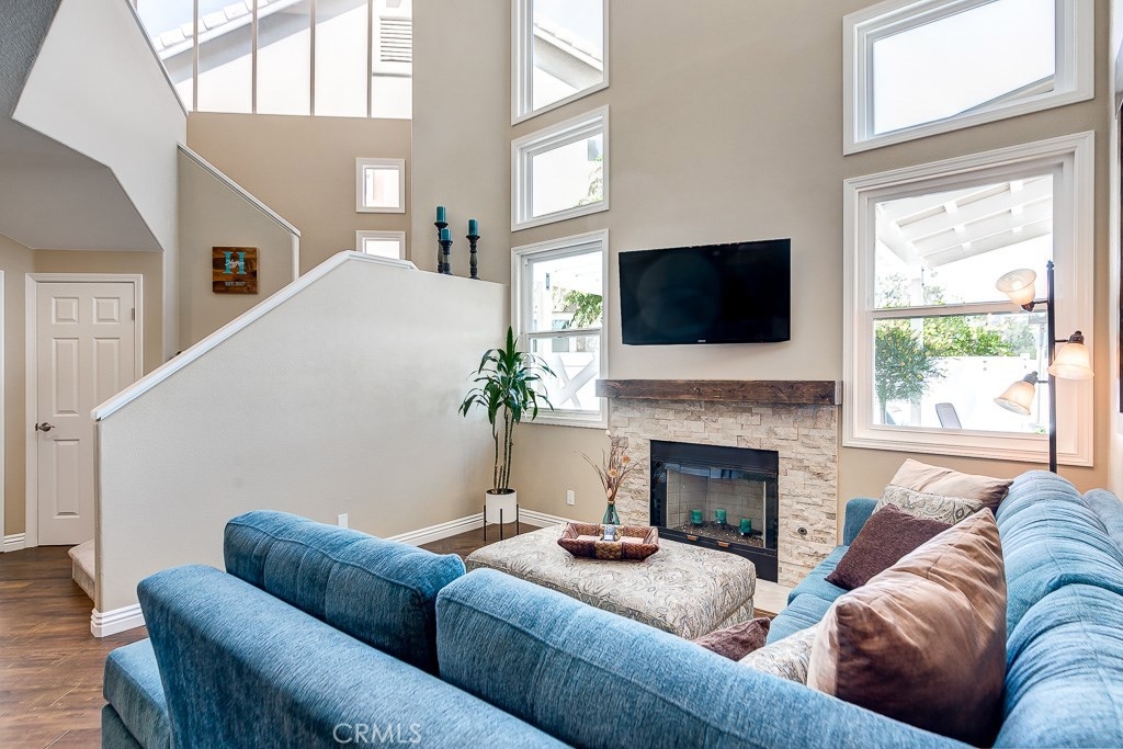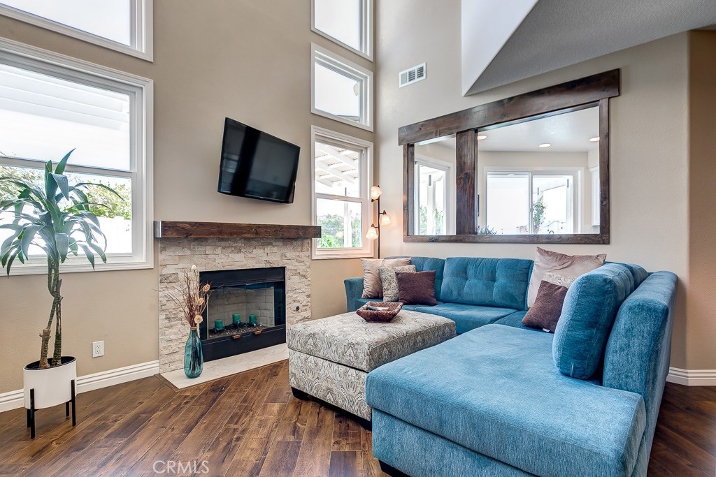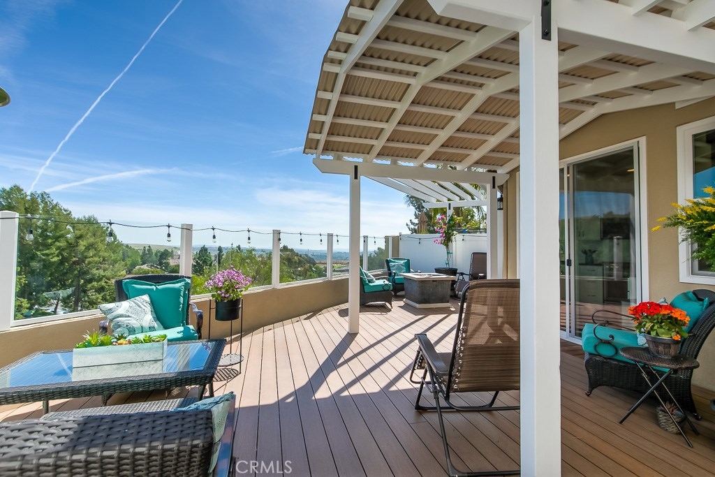 This is the most stunning Gallante model ever! Every inch of this house from the curb on back is perfection! You also get city lights, ocean, mountain and valley views! Beautiful extensive wood style laminate flooring, completely remodeled kitchen with quartz counters and stainless steel appliances, all bathrooms totally remodeled with quartz counters, custom added pass through opening to kitchen, custom mantle with stacked stone fireplace, custom added dual pane windows and slider, light custom paint throughout, custom light fixtures, New custom solid core interior doors, custom master closet and shower and barn door, etc. etc.!!! Open concept bright and airy floorplan! Amazing private view deck backyard with views and pergola! Super low association dues and No mello roos! This house is tricked out! Don't miss out on this rare treat!!!!!