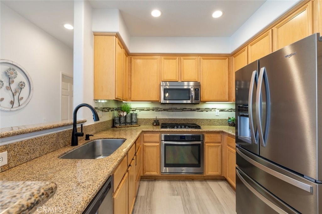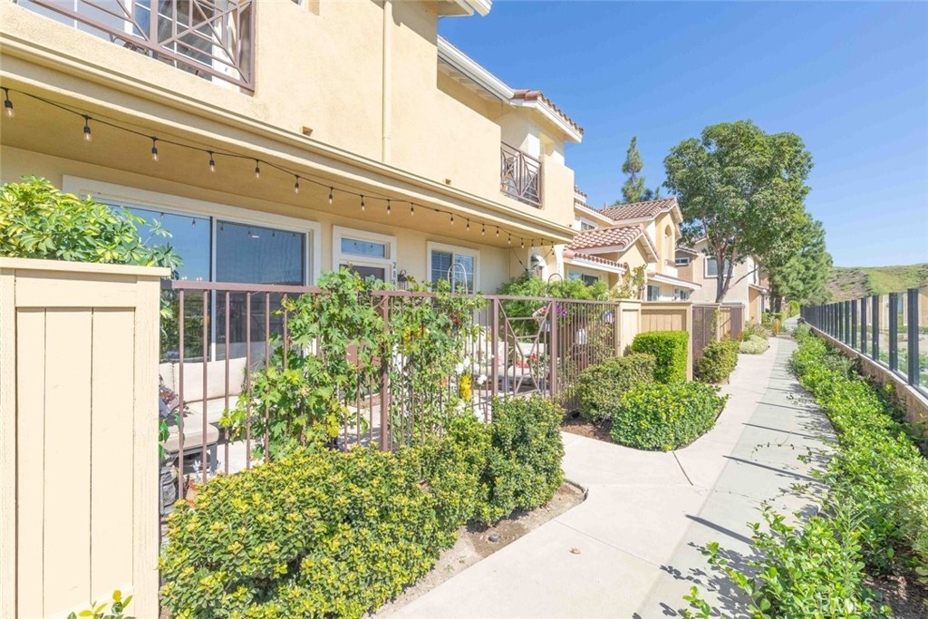 TURNKEY | 2 BEDS | 2 FULL BATH | 2 CAR ATTACHED GARAGE | IN-UNIT LAUNDRY | SINGLE STORY GROUND LEVEL | OVERSIZED PRIVATE COURTYARD | NO MELLOW ROOS | LOW TAXES | Welcome to your dream, single-story oasis! Throughout this home you'll find meticulous attention to detail and it showcases like a model home. This pristine 2-bed, 2-bath residence exudes warmth & style, offering hillside views & wide-open blue skies. The upgraded luxury flooring + recessed lighting throughout not only illuminates the space, but also adds a touch of modern elegance. The open-concept living space flows seamlessly into the heart of the home — a beautiful kitchen. You’ll find granite countertops & a custom backsplash that adds a unique touch complementing the overall design. The kitchen is not only a culinary haven, but also a gathering place for family & friends. With all appliances included (stainless steel stove, dishwasher, microwave, & refrigerator) + stacked washer & dryer, this home is move-in ready. Enjoy effortless living with a two-car attached garage providing direct & convenient access to the kitchen. As you step outside, you'll discover your own sun-filled oasis—a private, oversized 252 Sq. Ft. patio enclosed by a wrought-iron gate. The primary bedroom is a sanctuary of comfort, featuring dual closets & an ensuite bathroom with dual vanity. The second bedroom, with a full bathroom beside, is located on the opposite side of the house, offering privacy & comfort for you & your guests. Additional features include central air to keep you comfortable year-round, low-flow toilet/shower for water efficiency, a fire suppression system for safety, & a Nest system installed for your smart home needs. You'll have access to amenities including a pool, spa, & two playgrounds. This property offers financial peace of mind, with no Mello-Roos & low taxes. Located near the 133 & 241 Express Ways & 5 Freeway, you'll have access to your daily essentials whether it's grabbing your morning coffee at Starbucks, savoring a local restaurant, or enjoying nearby shopping -- everything is just moments away. Walk to nearby Whiting Ranch Wilderness Park with its canyons & rock formations + 17 miles of hiking, biking & equestrian trails. Don't miss the opportunity to call this property your Home Sweet Home. Discover the perfect blend of comfort, style, & convenience that this home has to offer. It has been lovingly maintained & cared for, making it ready for you to move in & start making memories.