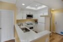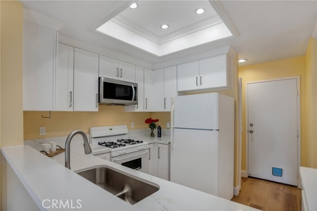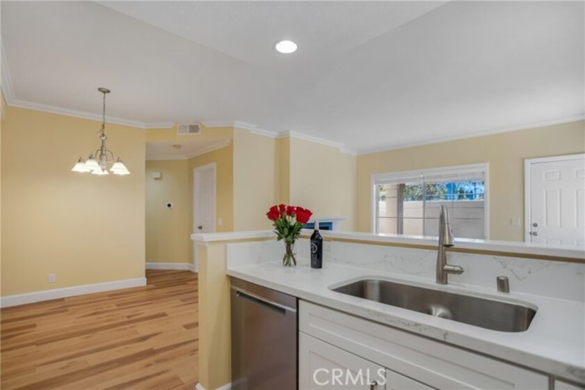 Remodeled with an attached garage and lots of outdoor space! This 2 bedroom, 2 bath charmer is ready to welcome you home. Updated recently with a new kitchen, new floors, new blinds, new baseboards, and freshly painted bedrooms, doors and trim - just bring your finishing touches. Wide-plank luxury vinyl adorns living areas and bedrooms. The kitchen was remodeled with new white cabinets, quartz countertops and a pantry with pull-out shelves. Morning sun graces both bedrooms. There is a convenient stackable washer/dryer inside and included. The attached garage has built in storage shelves. The front of the home offers enclosed space measuring approximately 40' long and 10'-14' wide. There is plenty of space to entertain, garden and enjoy.
