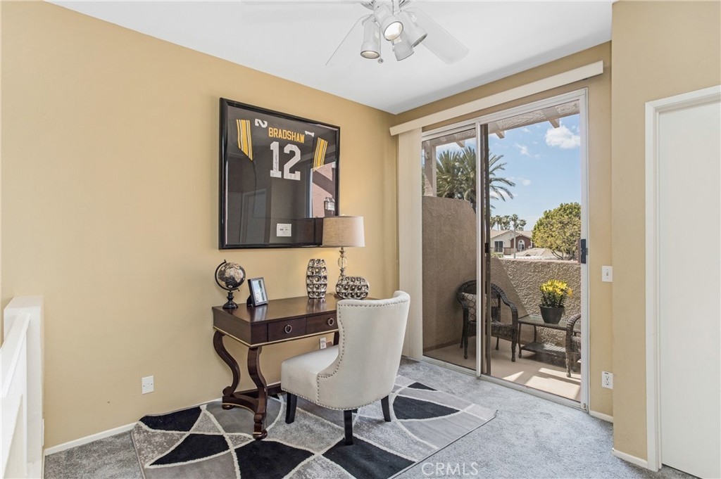 Beautiful 2 bedroom condo WITH AN OPEN LOFT, 3 bathrooms, and located in a fabulous neighborhood. This townhouse style home is located in a private secluded area of the community that overlooks a greenbelt. It also has city light and mountain views from the loft and upstairs balcony! This recently upgraded home includes custom tile flooring that looks like wood, custom baseboards, plantation shutters and an open concept floor plan. The first level includes the living room which has a fire fireplace, a formal dining room, a half bathroom, and an open gourmet kitchen with granite counters, stainless appliances, and lots of cabinets. The upstairs features an open loft and a view of the mountains from the balcony. There are many windows that bring in a lot of natural light. The master bedroom has vualted ceilings, two closets inlcuding a walk in, and a private patio. The master bathroom has high vaulted ceilings, a double sink vanity, big soaking tub and private toilet room. There is also a laundry room upstairs. The 2 car garage is oversized with an additional storage room. There are new pavers in the front yard with an open section so you can plant your own private garden! This complex is very well maintained and you are close to shopping, restaurants, movies, banks and toll roads. Home comes with an additional parking spot and there is plenty of open parking on the street. The loft could be converted into a small 3rd bedroom.