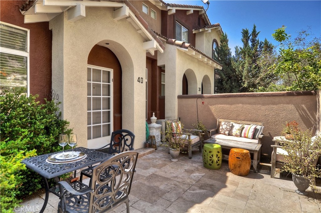 Introducing 40 Santa Barbara Court...one of the finest and most desirable locations within The Vineyards. Rarely on the market, A+ secluded location featuring a large private and expansive patio with gorgeous views of the lushly landscaped greenbelt. Spacious dual master floor plan featuring 2 en suite bedrooms and 3 bathrooms. Large open concept family room and dining room opens to modern kitchen with breakfast bar, stainless appliances, and patio views. Plenty of cabinet and storage space throughout. Convenient inside, top floor laundry area. Relaxing and serene balcony area off one of the bedrooms and gorgeous rolling hillside views off the other. Highly desirable attached two car garage with direct ground floor entry to kitchen. Enjoy the sparkling community pool, playground, and beautifully landscaped features of this wonderful community. Nearby biking and hiking trails, shopping, dining, Foothill Ranch Elementary school, and convenient toll road location.