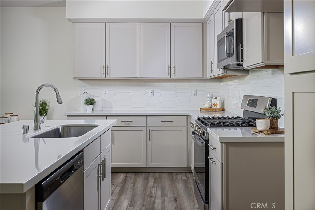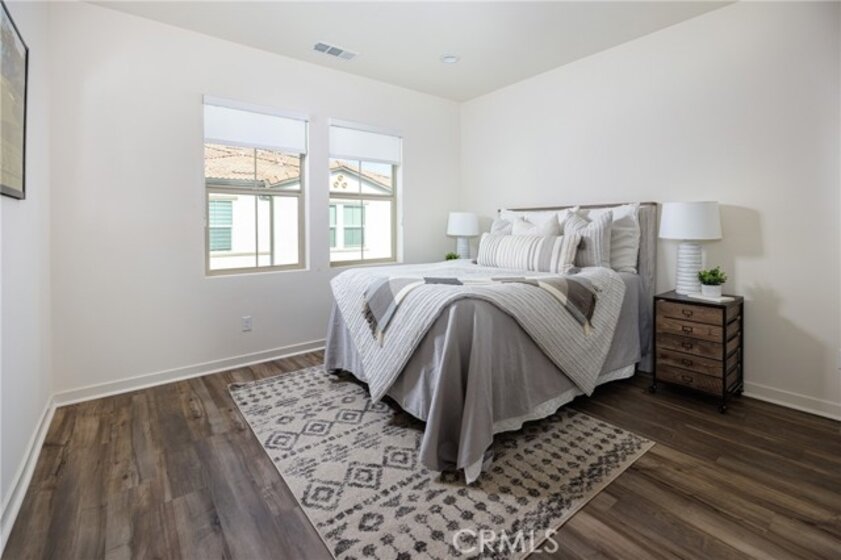 Welcome to this beautifully upgraded 2 bedroom, 2.5 bathroom townhome in the highly desirable gated community of Iron Ridge. Meticulously maintained and ready for its new owner, this home offers modern upgrades, a spacious two-car garage, and an ideal layout designed for comfort and style. Step inside to luxury vinyl plank flooring throughout and a bright, open living space. The cozy family room is filled with natural light from multiple windows, creating a warm and inviting atmosphere. The chef’s kitchen features shaker-style cabinets, quartz countertops, a custom backsplash, stainless steel GE appliances, and a large kitchen island—perfect for entertaining. Upstairs, both bedrooms provide comfort and privacy. The spacious primary suite boasts a large walk-in closet and an elegant ensuite bathroom with quartz countertops, a double vanity, and an oversized shower creating a spa like experience. The secondary bathroom is beautifully finished with quartz countertops, stylish upgraded fixtures, and a tub/shower combination. For added comfort, this home includes a QuietCool whole house fan and an energy-efficient tankless water heater. Enjoy resort-style living with exclusive HOA amenities, including a clubhouse, swimming pool, spa, parks, tot lots, tennis courts, barbecue areas, and picnic spots. Conveniently located near award-winning schools, Foothill Town Center, and Whiting Ranch Wilderness Park. Easy access to freeways and toll roads. Low property taxes and no Mello Roos make this an exceptional opportunity!