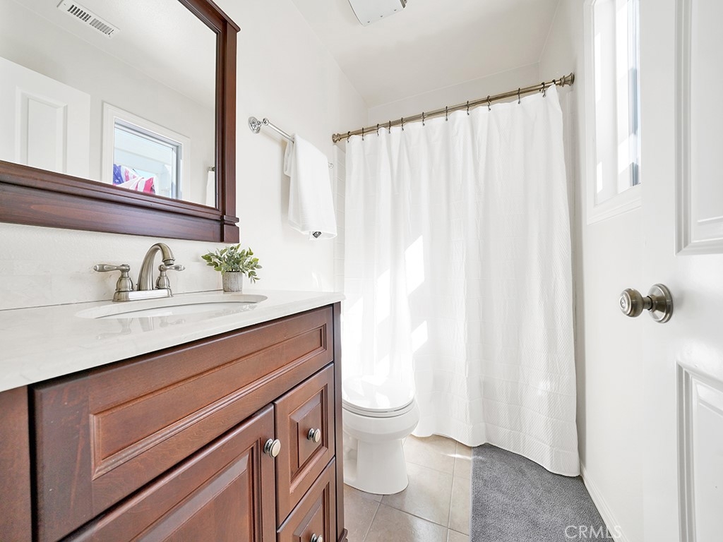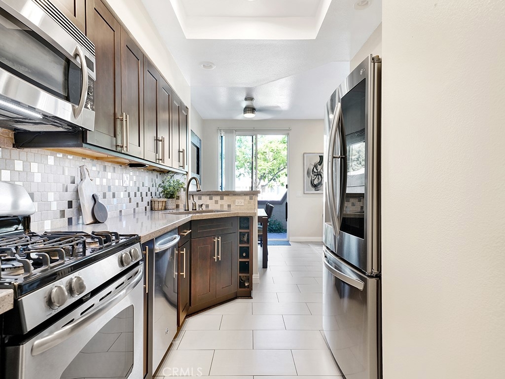 UPGRADED WITH STYLE! Homeownership just got more exciting with the ease of knowing you have a move-in-ready space to call home. With so many Upgrades taken care of, you only need to pack your bags! Upon entering the home, you will notice the beautiful neutral tile floors nicely paired with the natural soft pallet walls and white 4" baseboards. The home is framed with all-new double-pane windows and blinds throughout. The kitchen has been completely renovated! Custom solid wood cabinets with pullouts, silestone quartz countertops, sandstone backsplash, stainless steel appliances, and a touch faucet. Direct access to your two-car garage equipped with a new garage door opener. Outside your dining room you have your enclosed patio where you can BBQ, or relax and enjoy the outdoors. All three bathrooms have been fully renovated with custom vanities, countertops, light fixtures, and faucets. The primary bedroom is spacious, with an en-suite and walk-in closet. The secondary room has a custom closet and en-suite with a private balcony. OTHER NOTABLE FEATURES include LOW HOA, custom built-in for extra storage space, custom hamper, recessed lighting, ceiling fans throughout, Nest thermostat, new fire rated door, and whole house repipe. the community has a playground, picnic area, and pool/spa and is conveniently located near restaurants, shopping, Hoag Medical Center, Whiting Ranch trails, award winning elementary school and a few miles to Irvine Spectrum.