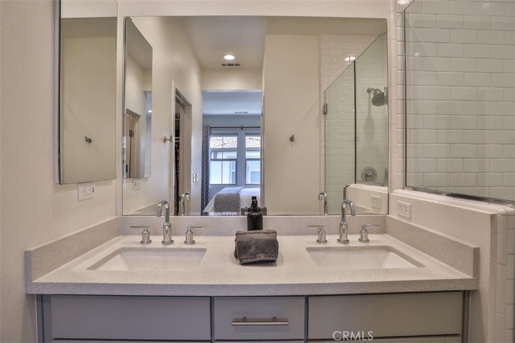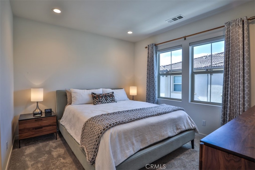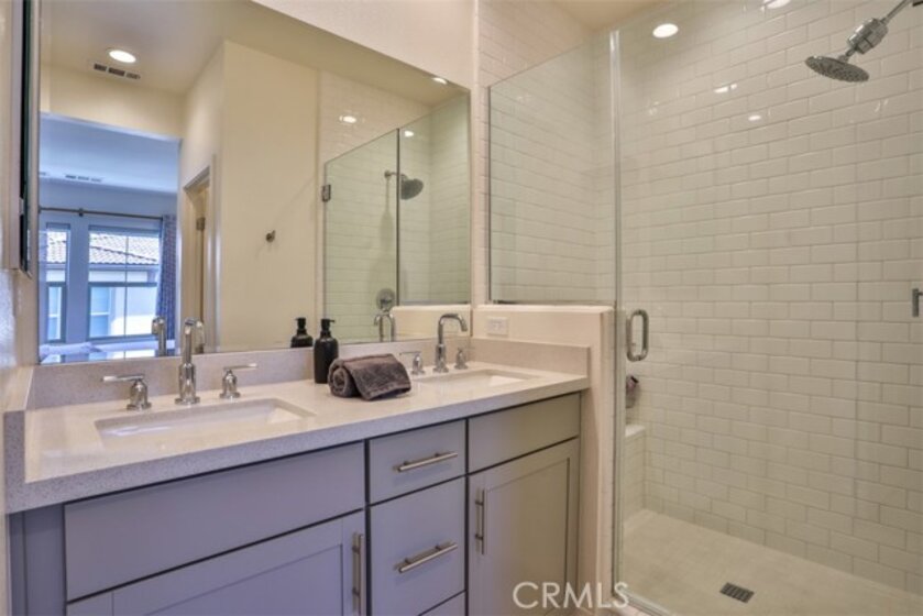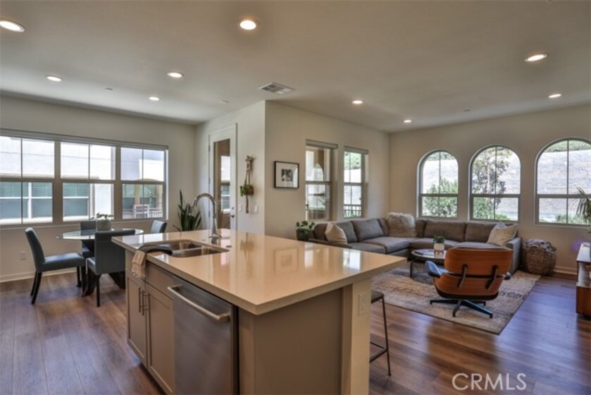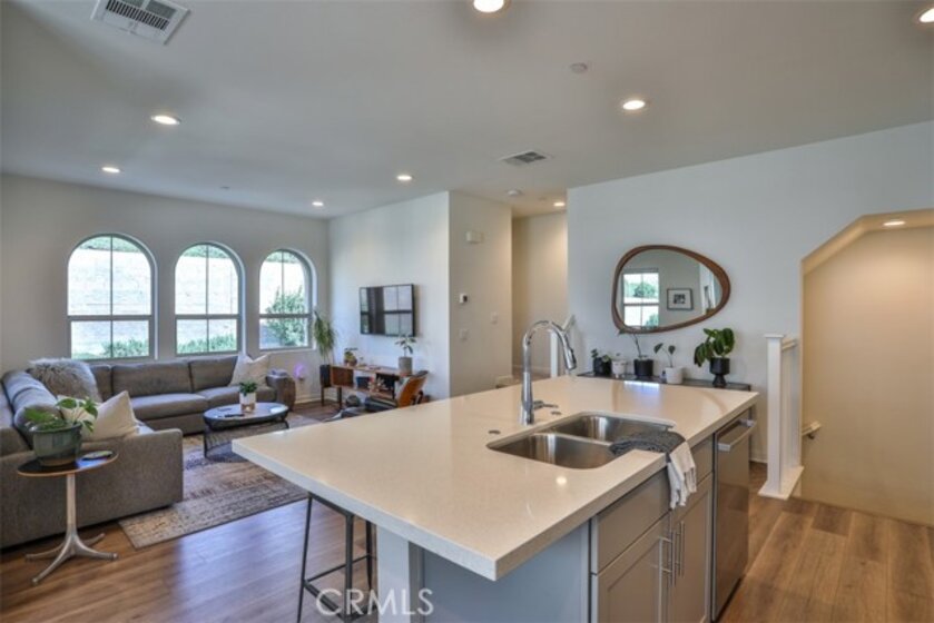 Experience modern luxury in this premier end unit located within the gated Iron Ridge community of Lake Forest, recognized as the OC Register’s Best New Home Community in 2018. This north-facing residence is bathed in tons of natural light throughout its thoughtfully designed layout, which boasts a private location away from the sounds of vehicles and looks out onto a serene greenbelt. The interior features designer tile flooring on the first floor and a transition to stylish, waterproof luxury vinyl plank flooring across the main living level, complemented by upgraded roller shade window coverings throughout. The heart of the home is a bright, open kitchen complete with a white quartz island, upgraded glass tile backsplash, and stainless steel appliances, all framed by elegant, upgraded stair railings that lead to the upper level. The living space includes two spacious bedrooms plus a versatile loft that can easily be converted into a third bedroom if needed, while the primary bathroom offers a spa-like feel with a timeless subway-tiled shower. Move-in ready, this property provides easy access to the resort-style amenities of Iron Ridge, including a pool, clubhouse, dog park and sports fields. Residents will enjoy close proximity to Whiting Ranch Wilderness Park and O’Neill Regional Park for outdoor adventure, as well as the convenience of Foothill Ranch Town Center and the Irvine Spectrum. This home is served by the award-winning Portola Hills Elementary and El Toro High School, with Santa Margarita Catholic High School available as a nearby private option.