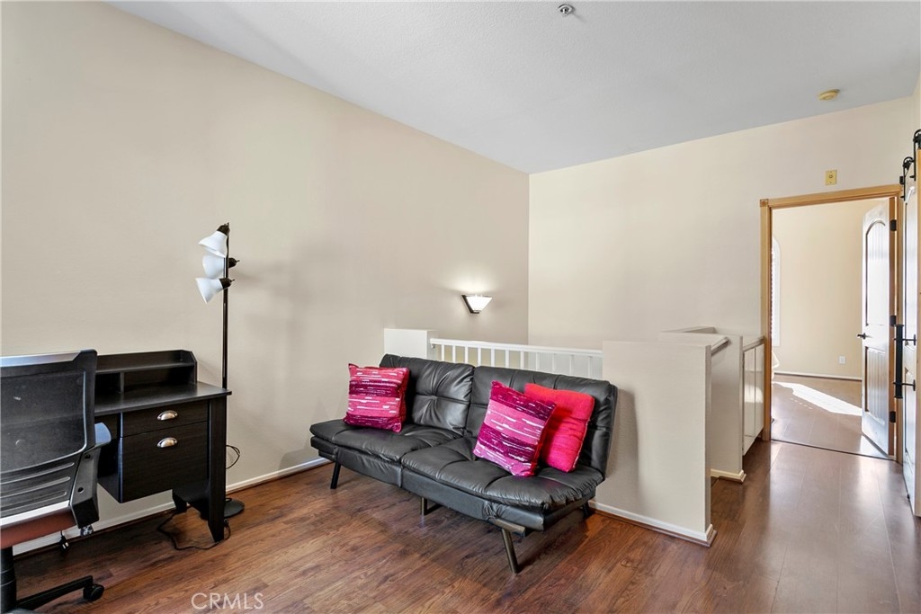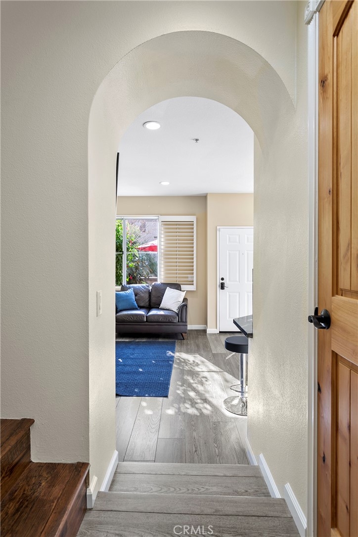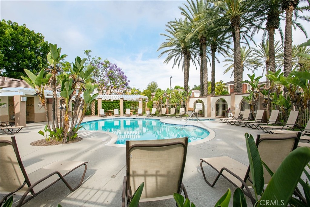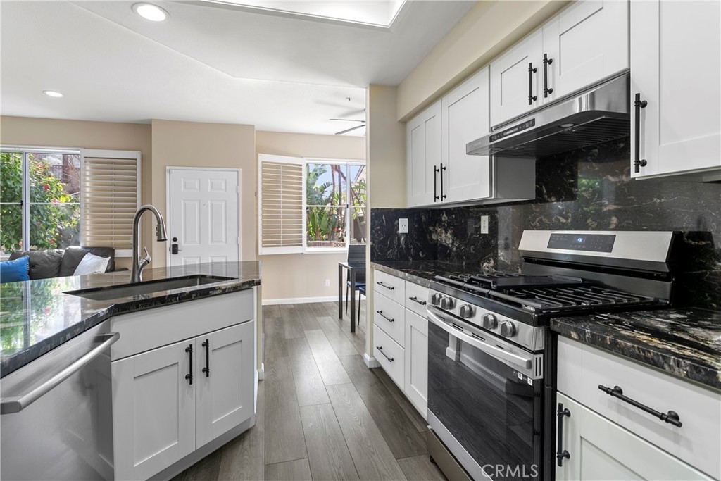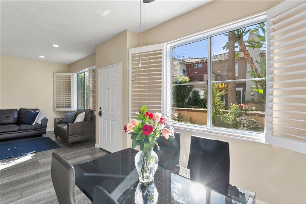 This delightful townhome is nestled in the charming Vineyards community of Foothill Ranch. The inviting gated patio sets the stage for outdoor gatherings and is a perfect place to unwind in a picturesque setting. The floor plan is open and bright, complemented by fresh paint and luxury vinyl plank flooring. Cooking is a pleasure in the modern kitchen, with stainless steel appliances, new white cabinets, granite counters, and an oversized breakfast bar. The contemporary kitchen flows seamlessly into the living room with a cozy fireplace and dining area. The home has direct access to a two-car garage with plenty of storage. Retreat to the 2nd-floor primary suite with a modern bath with a soaking tub and shower combination, dual sinks, a large walk-in closet, and a private terrace, a peaceful spot for morning coffee. There is an additional bedroom, full bath, and stylish barn doors to conceal the laundry. The spacious loft is an ideal spot for a home office with a 2nd private terrace. Enjoy community amenities, including a pool, spa, and playground, while conveniently located near shopping, restaurants, movie theaters, schools, parks, 241 Toll Road, and Whiting Ranch Wilderness Park with hiking and biking trails.