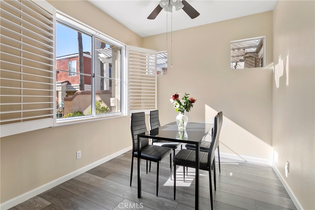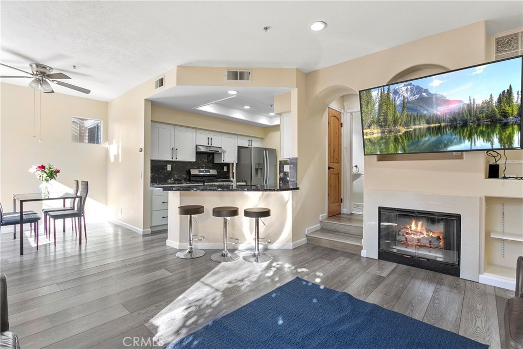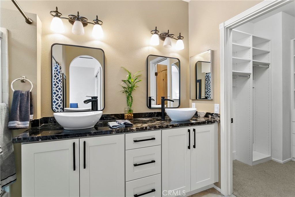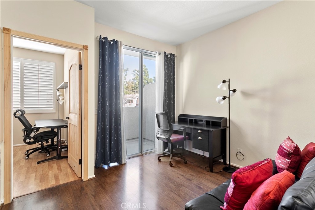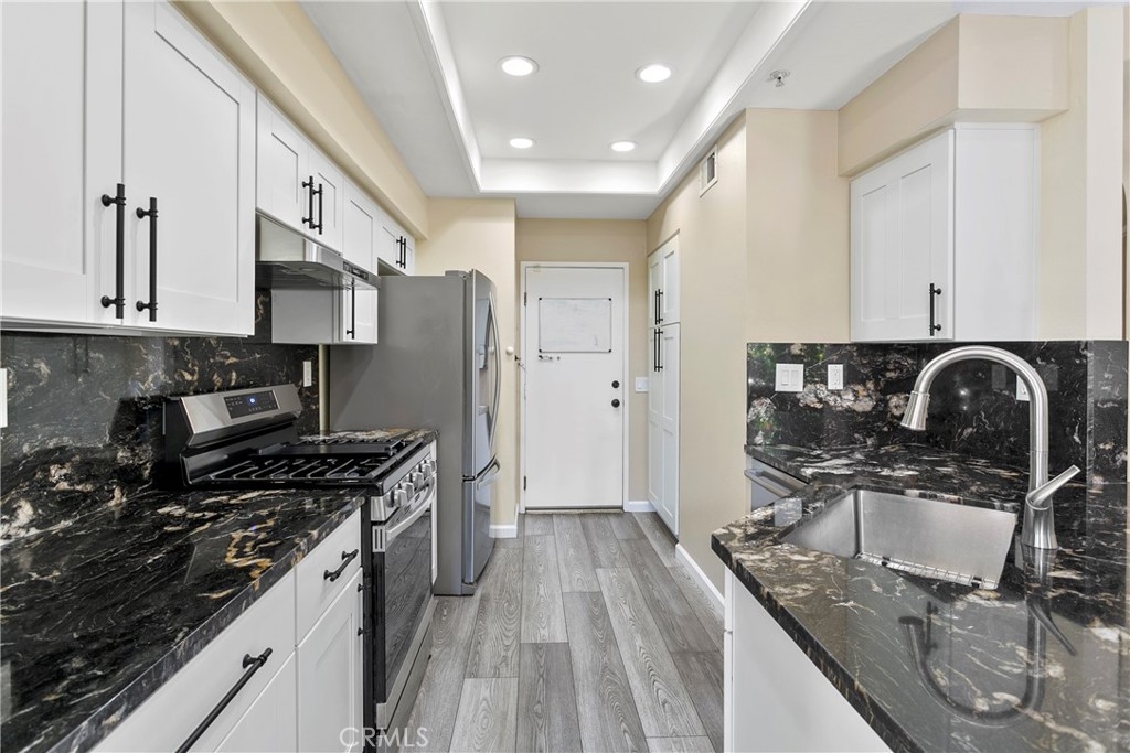 This delightful townhome is nestled in the charming Vineyards community of Foothill Ranch. The inviting gated patio sets the stage for outdoor gatherings and is a perfect place to unwind in a picturesque setting. The floor plan is open and bright, complemented by fresh paint and luxury vinyl plank flooring. Cooking is a pleasure in the modern kitchen, with stainless steel appliances, new white cabinets, granite counters, and an oversized breakfast bar. The contemporary kitchen flows seamlessly into the living room with a cozy fireplace and dining area. The home has direct access to a two-car garage with plenty of storage. Retreat to the 2nd-floor primary suite with a modern bath with a soaking tub and shower combination, dual sinks, a large walk-in closet, and a private terrace, a peaceful spot for morning coffee. There is an additional bedroom, full bath, and stylish barn doors to conceal the laundry. The spacious loft is an ideal spot for a home office with a 2nd private terrace. Enjoy community amenities, including a pool, spa, and playground, while conveniently located near shopping, restaurants, movie theaters, schools, parks, 241 Toll Road, and Whiting Ranch Wilderness Park with hiking and biking trails.