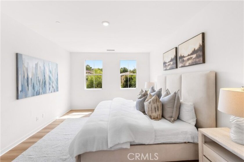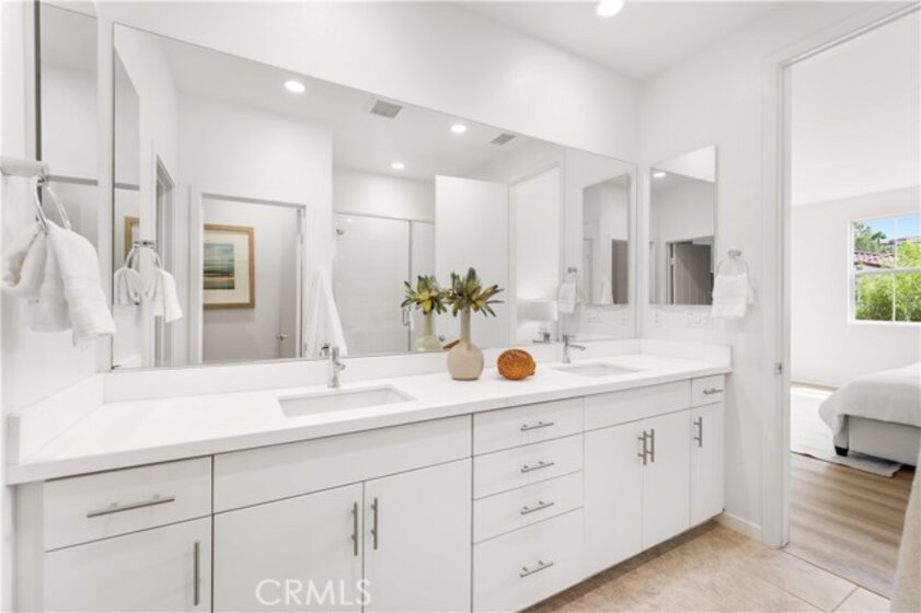 Experience refined living in this beautifully designed Baker Ranch residence featuring 3 bedrooms, 2.5 bathrooms, a private front yard, and the benefit of no Mello Roos. The light-filled interior showcases new luxury vinyl flooring, an open-concept great room, and a gourmet kitchen with quartz countertops, center island, gas range, stainless steel appliances, and modern cabinetry. Upstairs, the serene primary suite offers a spa-inspired bath with dual vanities, quartz counters, walk-in shower, and massive closet space. Additional conveniences include a dedicated laundry room, whole house fan, custom built-ins, and a direct-access two-car garage. Baker Ranch residents enjoy resort-style amenities: 10 parks, 8 heated pools and spas (including a quiet pool), hiking and biking trails, fitness stations, basketball, tennis, beach volleyball, bocce ball, baseball and soccer fields, fire pits, outdoor fireplaces, BBQs, clubhouses, hammocks, a covered outdoor kitchen, and the beloved Barker Ranch Dog Park.